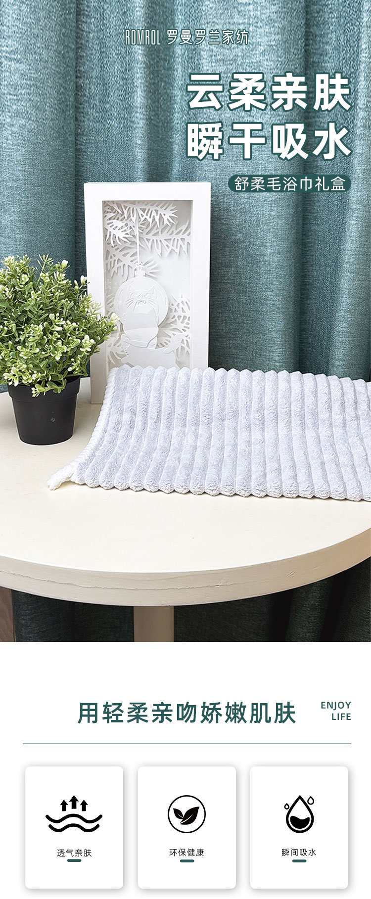 罗曼罗兰 舒柔毛浴巾三件套 礼盒套装珊瑚绒浴巾毛巾三件套 配礼袋 活动送礼 伴手礼