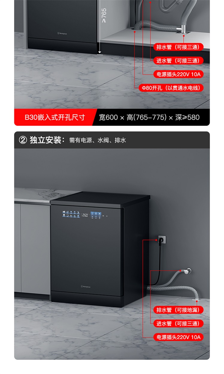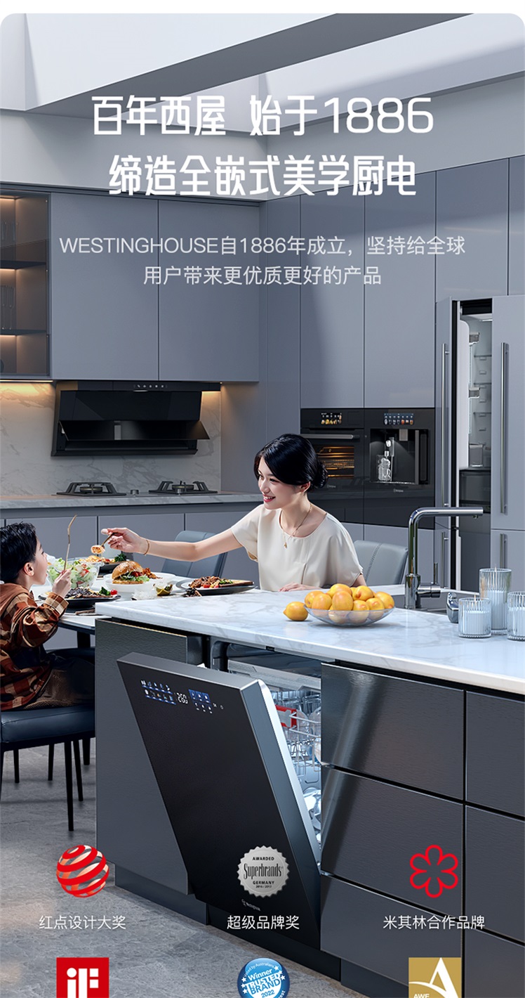 西屋Westinghouse嵌入式洗碗机 普区包邮 独嵌两用1级水效节能环保 10+6PRO洗涤模式 WQP18-B30包安装
