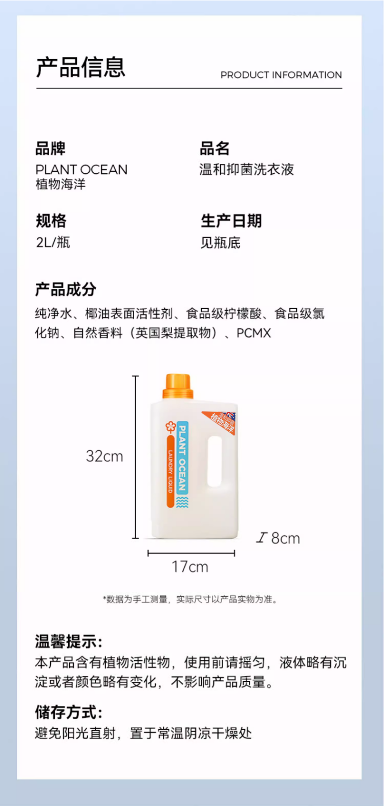 澳洲原装进口植物海洋英国梨温和抑菌洗衣液2L*1瓶+蓝风铃柔顺抑菌洗衣液2L*1瓶