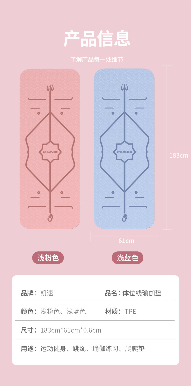 凯速防滑耐撕带体位线TPE瑜伽垫