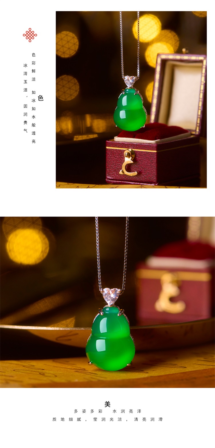 琳琯瑛玉髓帝王绿色福禄吊坠【主材质:玉髓,配饰:S925银】CHA5240002每证一品