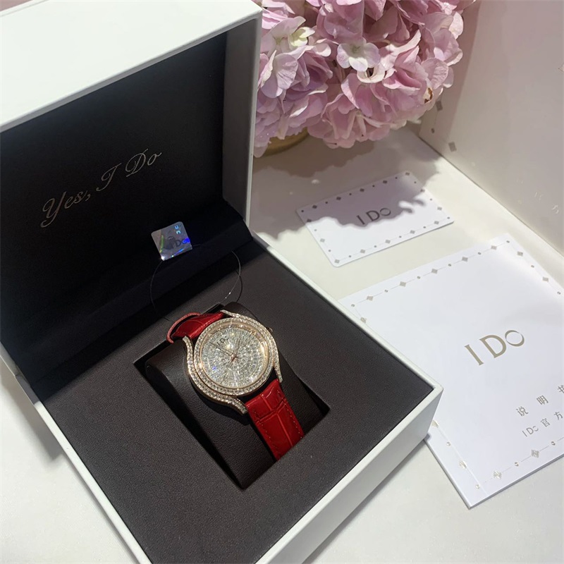 I DO女士手表心动系列腕表时尚满钻女款表满钻手表轻奢手表皮带款 礼盒装