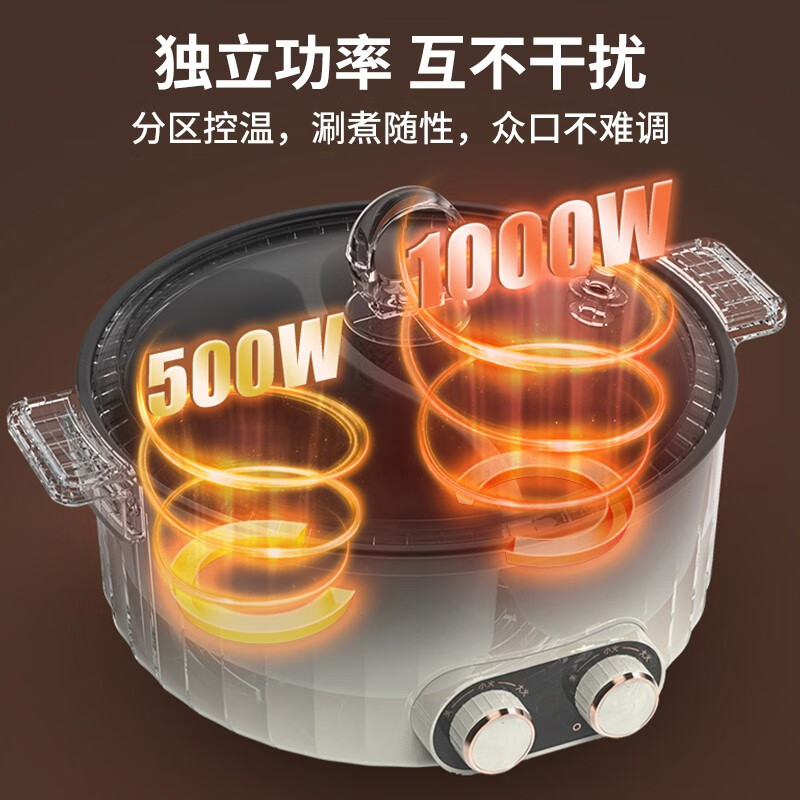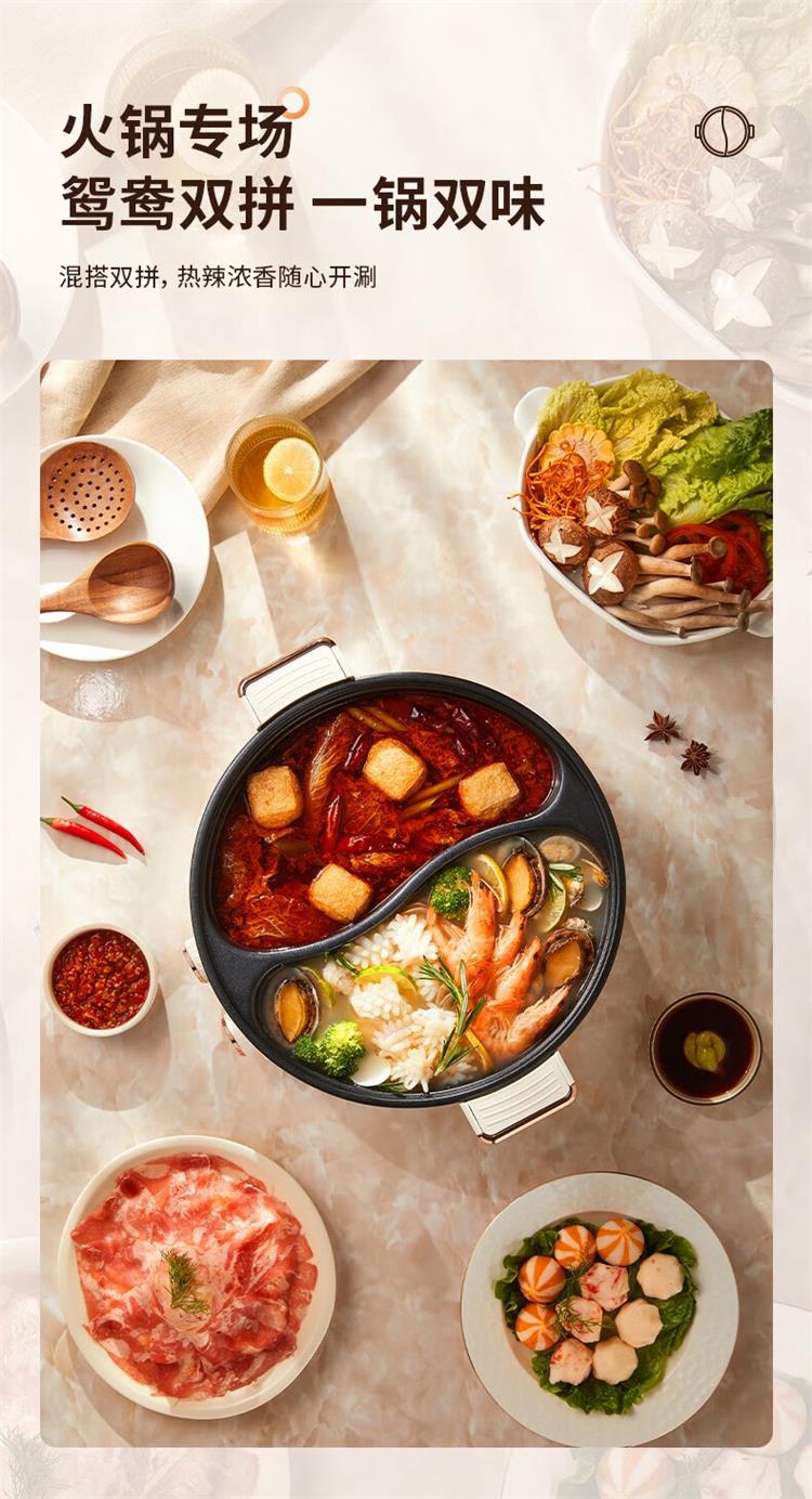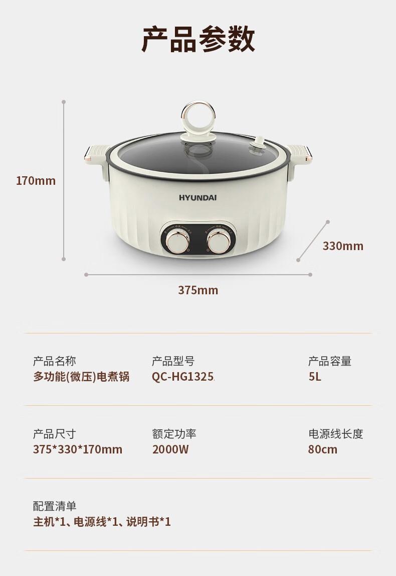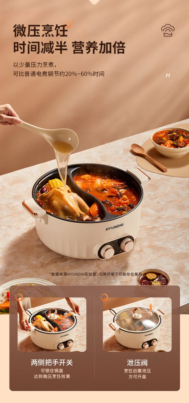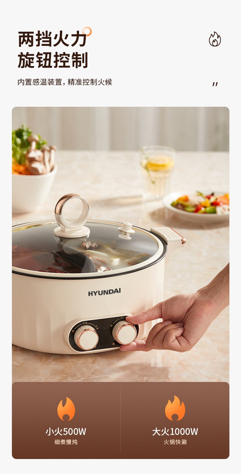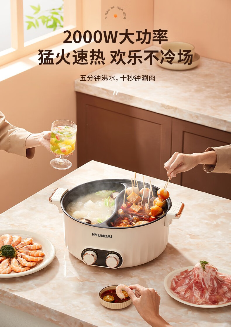 HYUNDAI韩国现代家用多功能鸳鸯电火锅料理锅电煮锅大容量一体电热火锅涮肉锅煮面分区控温 5L鸳鸯锅【2000W大功率+分区控温】QC-HG1325
