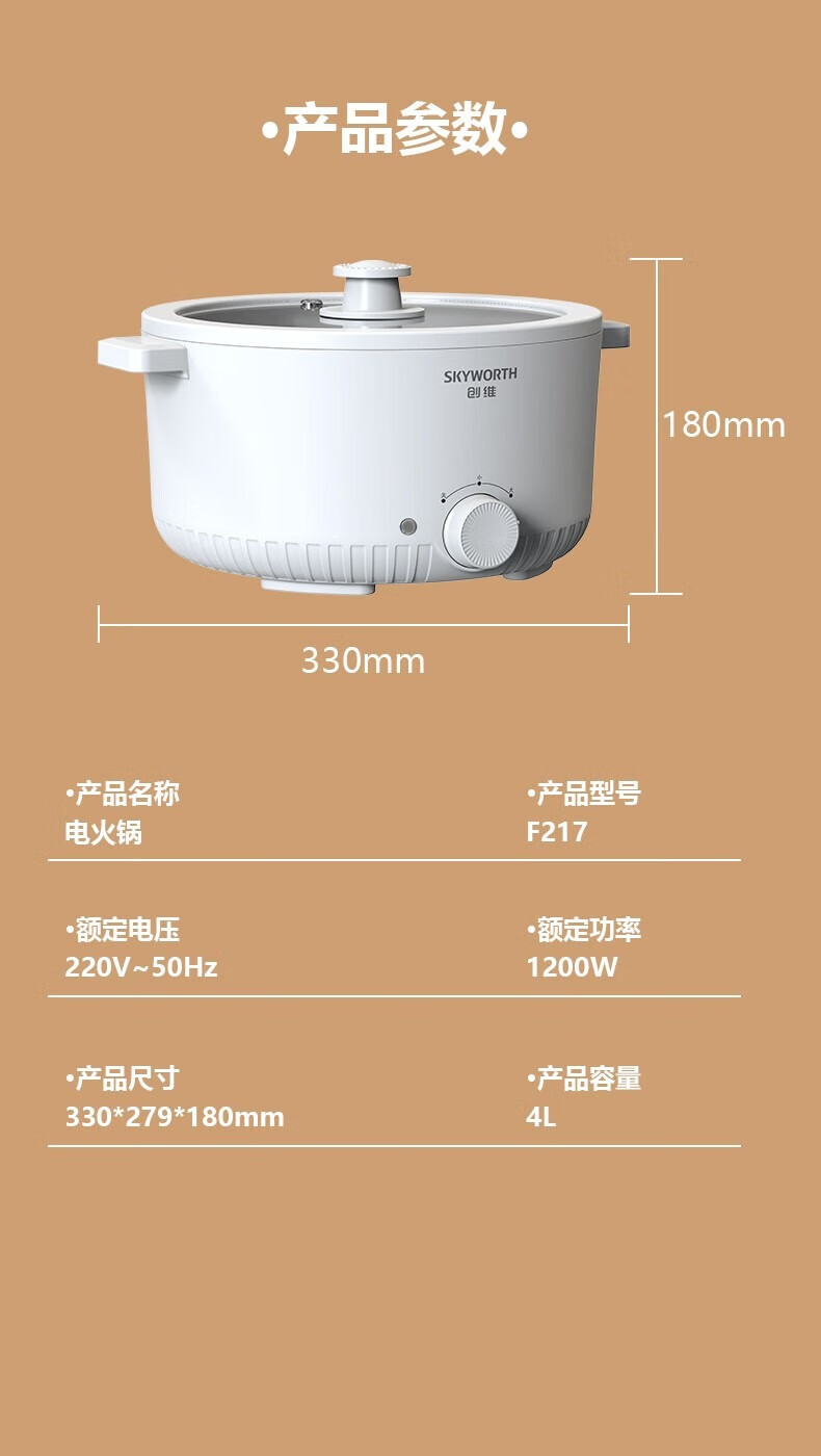 创维电火锅 电煮锅 多功能锅家用电热锅小电锅F217
