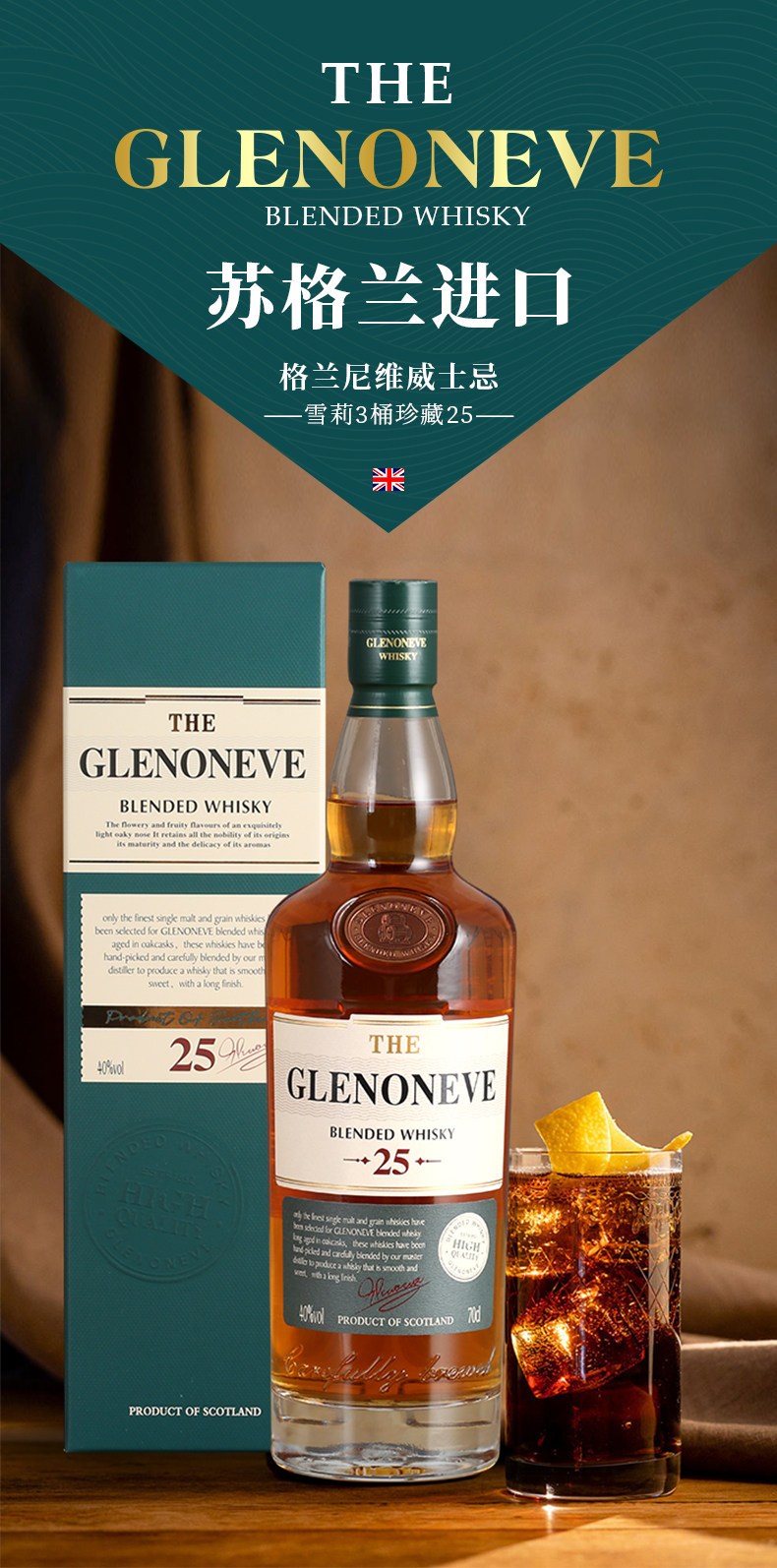 格兰尼维 雪莉3桶珍藏25威士忌 700ml*1瓶
