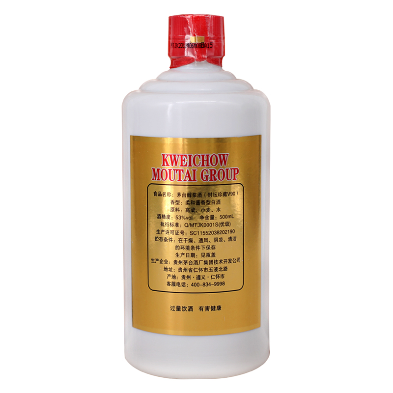 茅台醇浆封坛珍藏V90 53°柔和酱香型白酒 生产日期:2020年1月17日 单瓶礼盒装 两瓶附赠手提袋