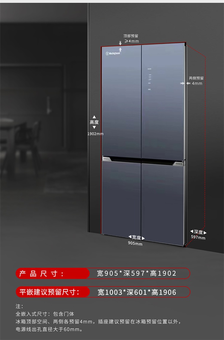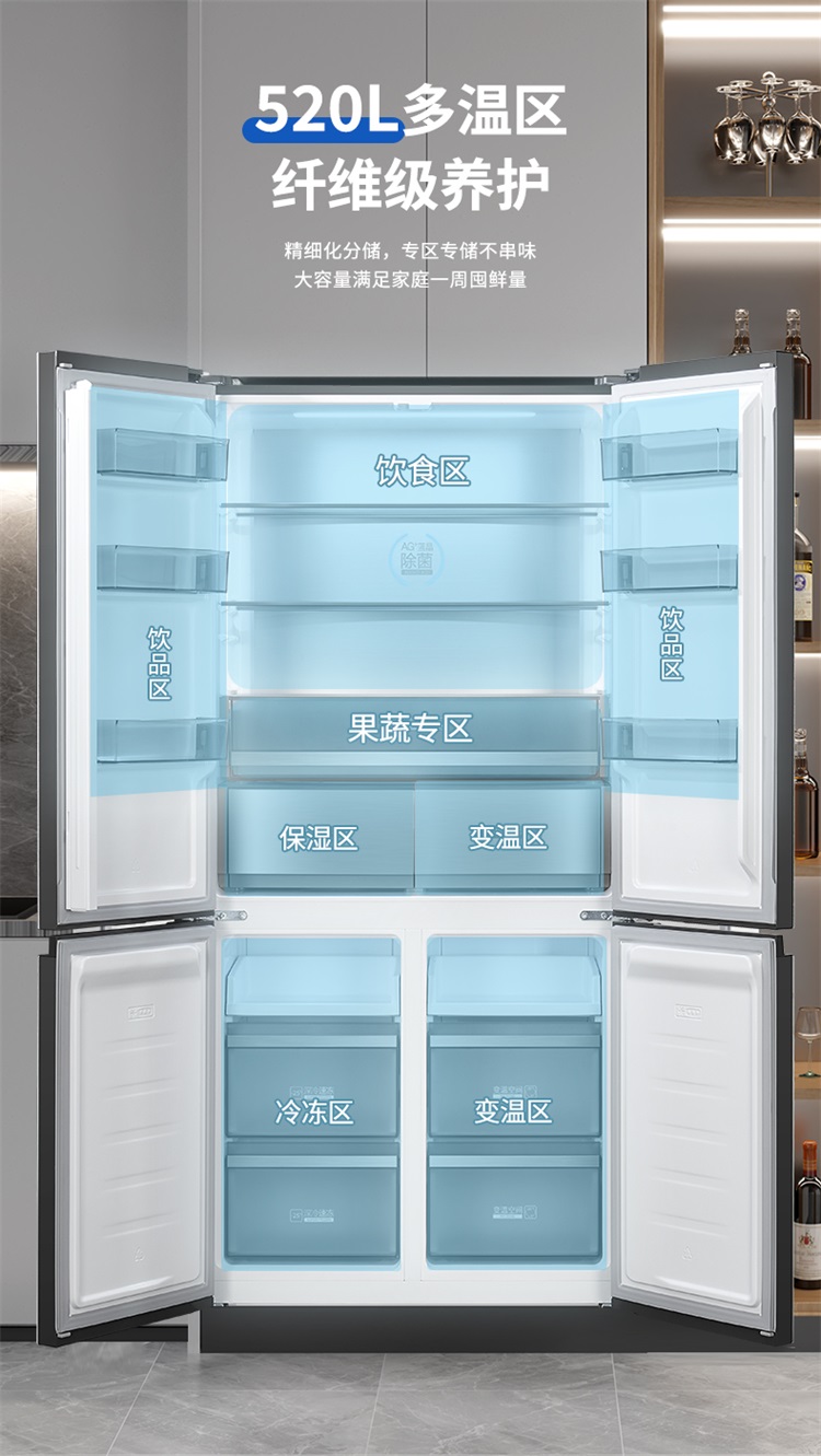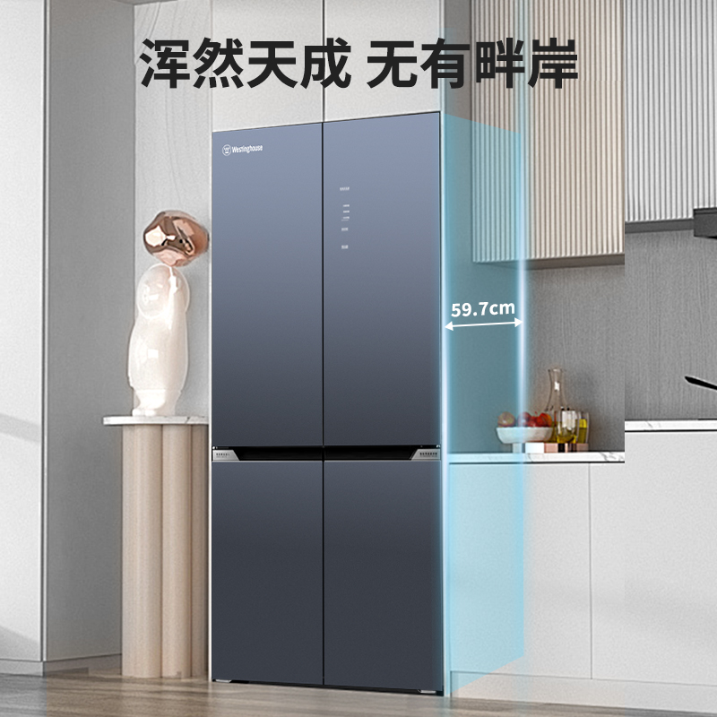 西屋Westinghouse超薄零嵌玻璃门 520升十字对开门底部散热双变频AG蓝光除菌大冰箱 BCD-WF520G700西雅图蓝【送货上门】