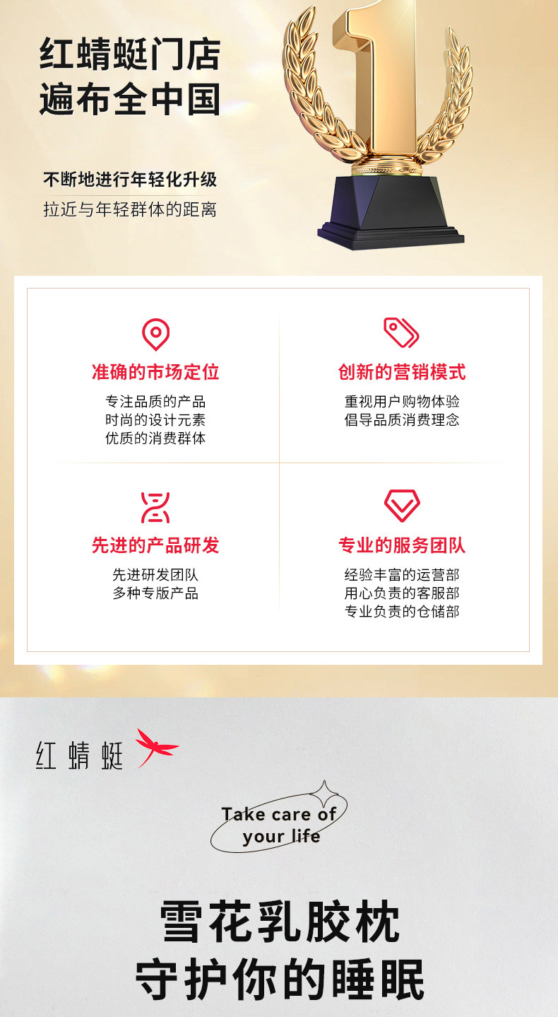 红蜻蜓乳胶枕天然雪花抑菌枕头成人儿童护颈助眠乳胶枕高回弹HQT-3019