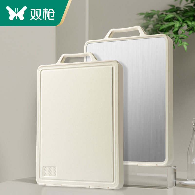 双枪白色站立不锈钢PP双面砧板 43.5*29.5*1.8cm(含把手)【新疆/西藏/青海/云南/海南/黑龙江不发货】