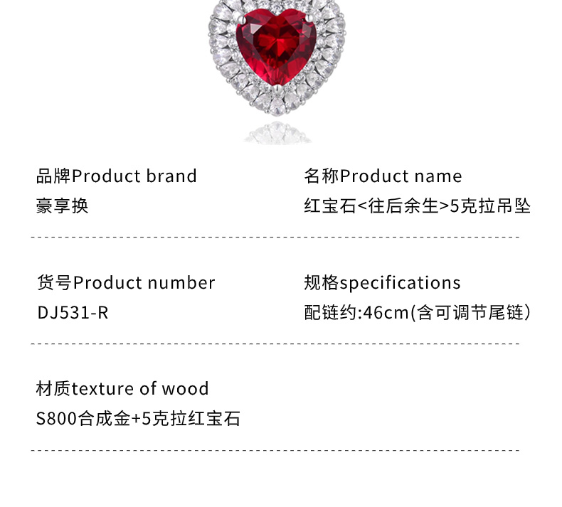 豪享换JLF 红宝石 往后余生【培育红宝石】 5克拉吊坠 吊坠DJ531-R(红色)