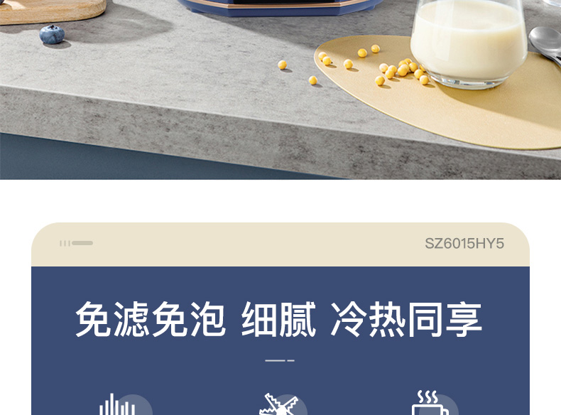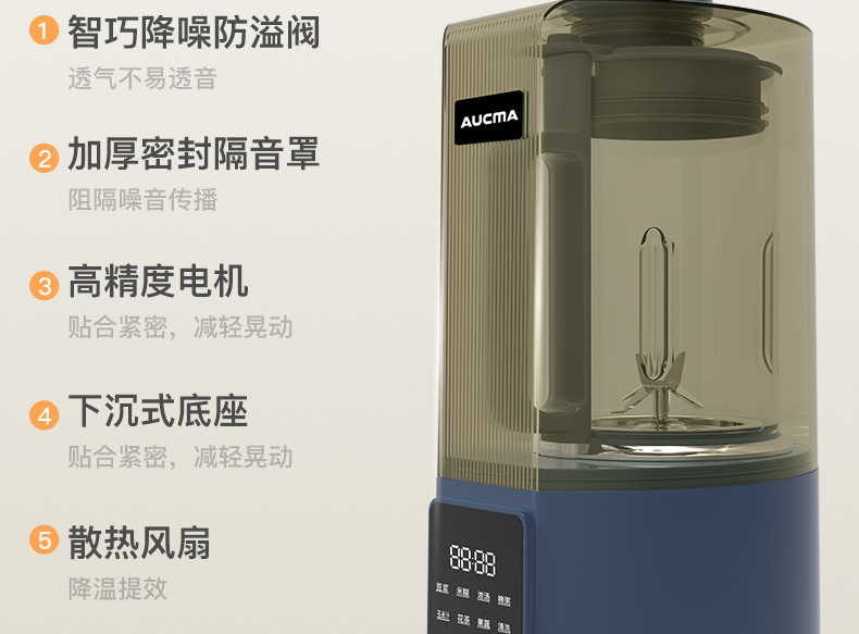 澳柯玛降噪低音破壁机家用豆浆机 智能加热全自动榨汁机 有罩搅拌机辅食机早餐机 12刀头 1.5L容量 双层包装 SZ6015HY5