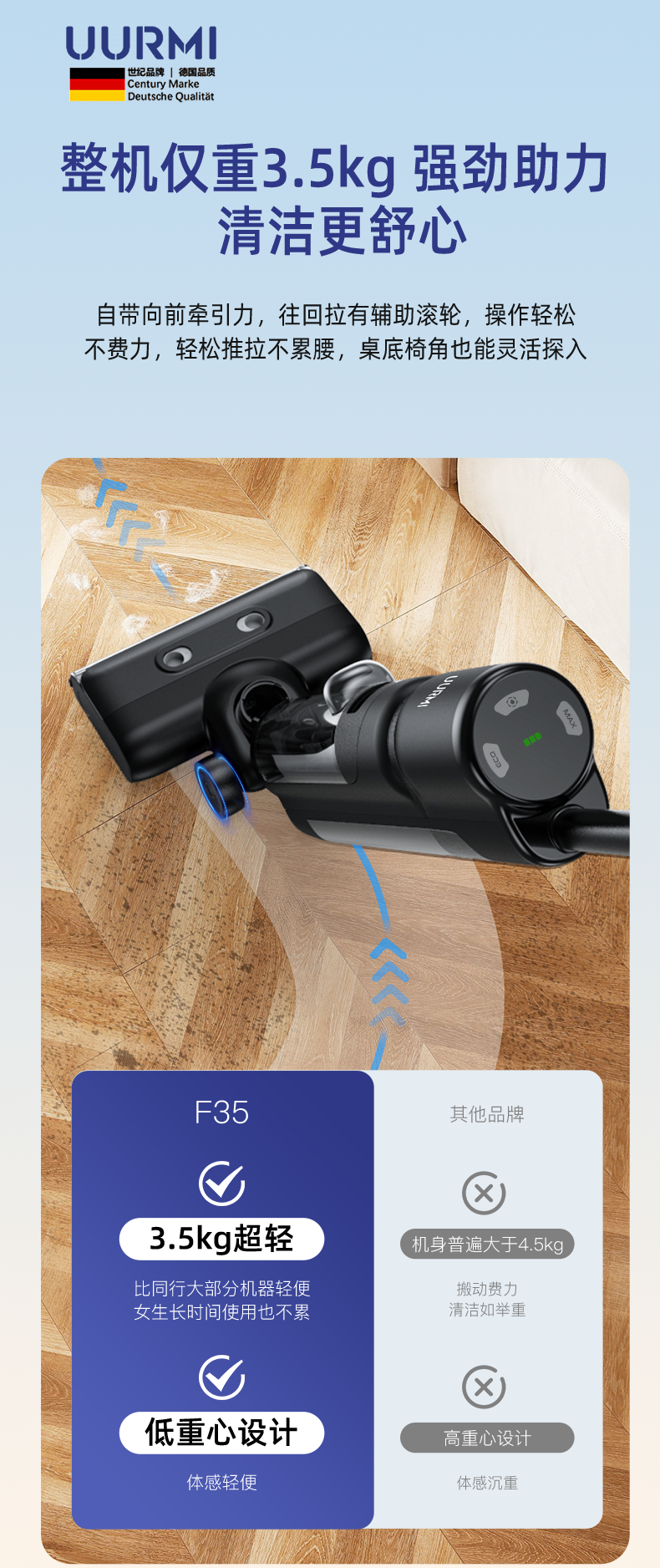 悠米/UURMI德国品牌 家用智能手持洗地机 吸脱一体机 一键自清洁 大吸力双侧贴边 型号:F35
