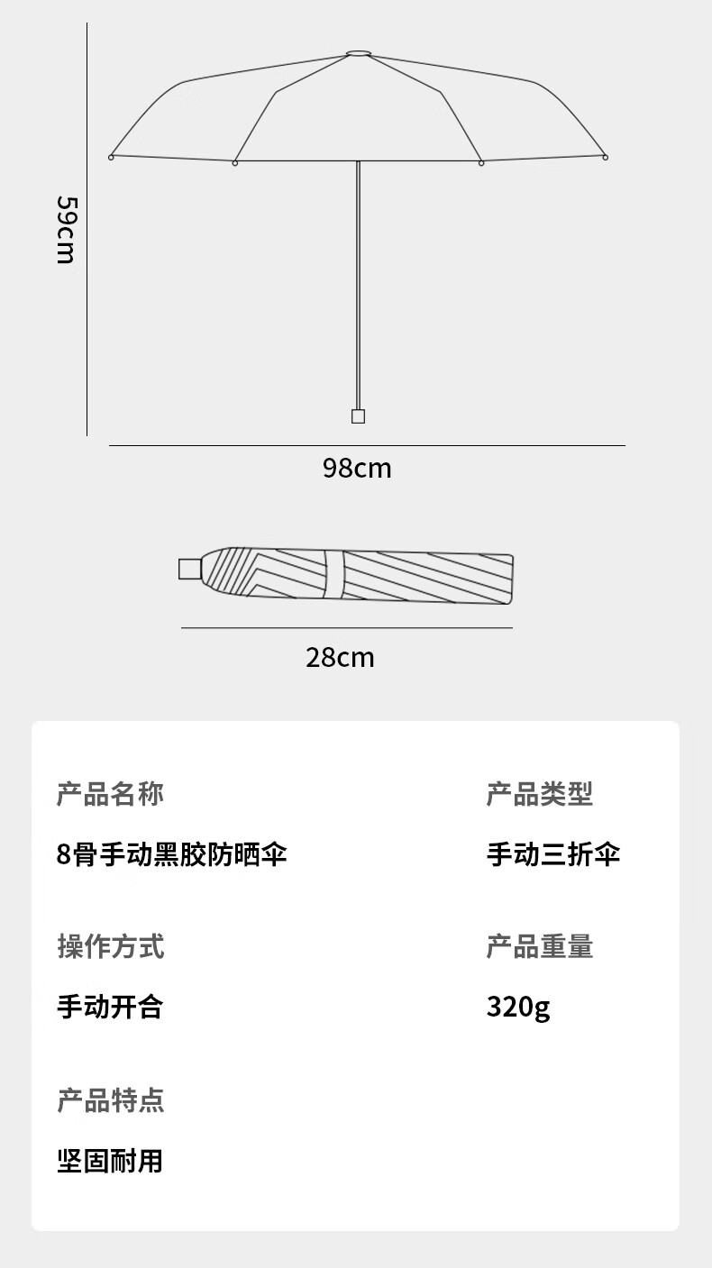瑞德姆REDURM 黑胶户外太阳伞三折叠伞 轻巧便携 RS-269 藏青色/天蓝色 2色可选