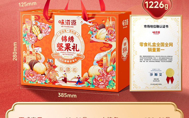 味滋源坚果礼盒坚果炒货零食节日送礼团购福利 员工福利新年礼物 锦绣坚果礼盒1226g