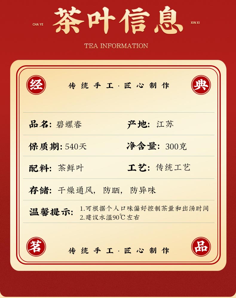 小茶日记 红色喜乐国际 碧螺春300g 茶叶