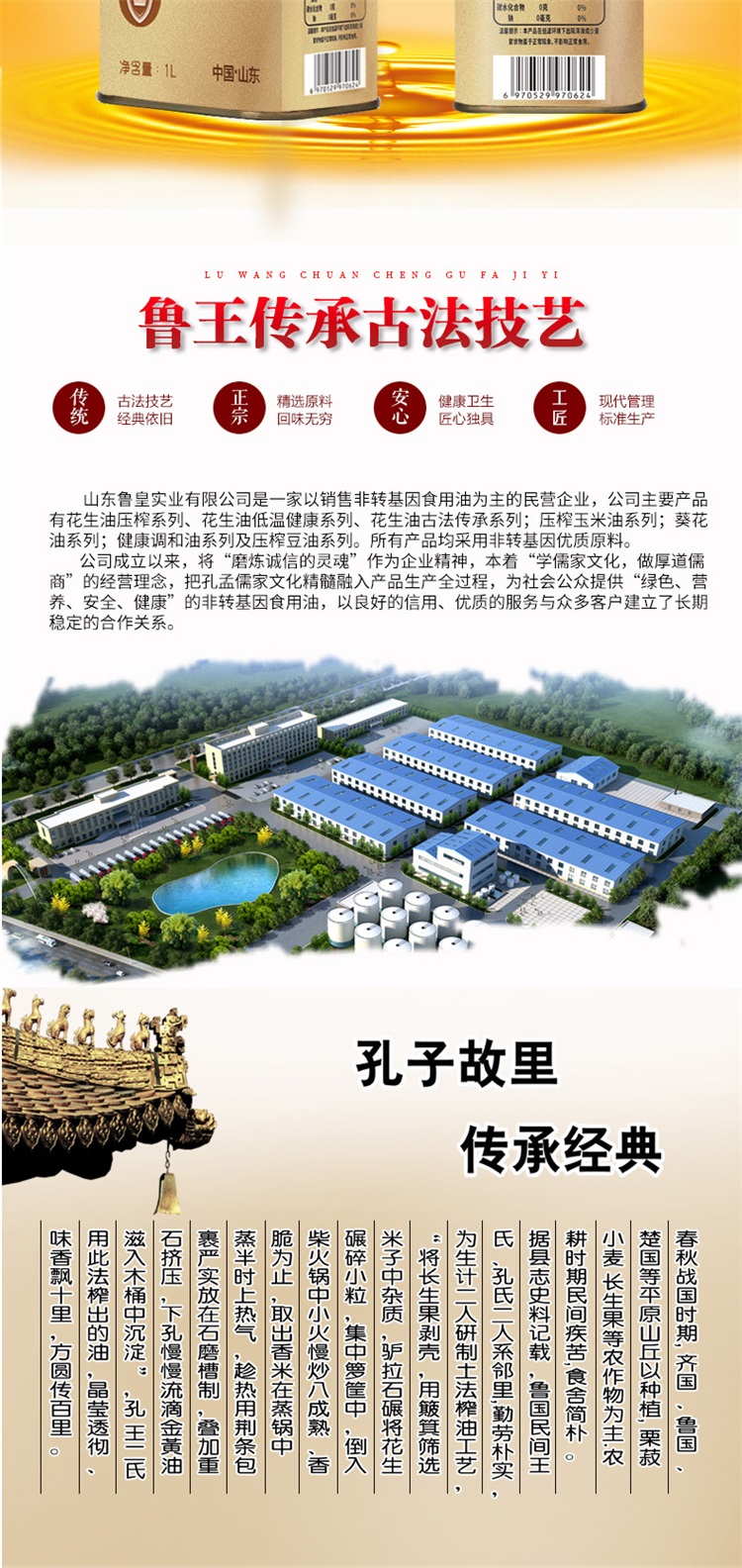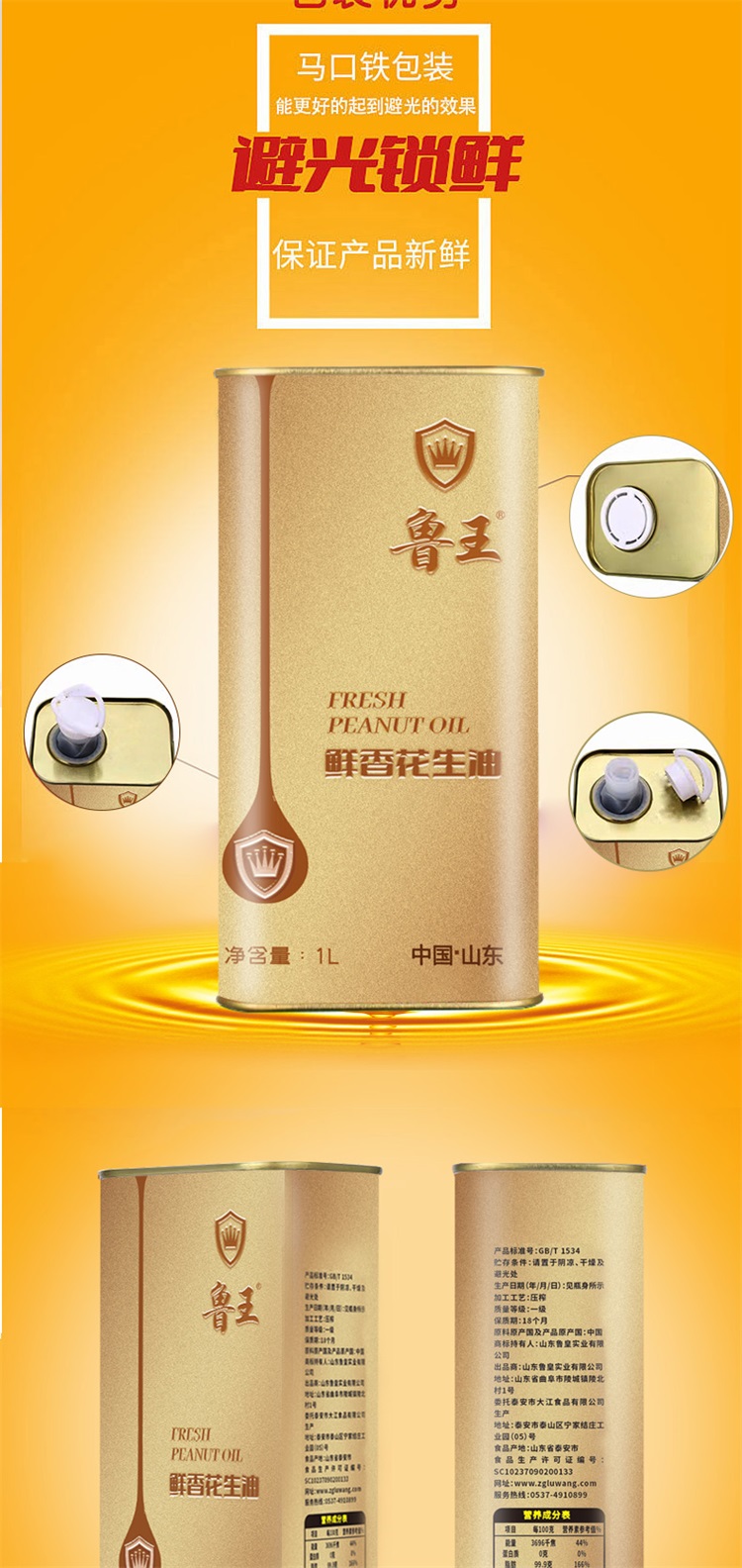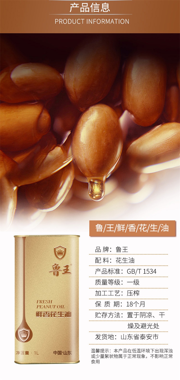 鲁王鲜香花生油1L*2礼盒