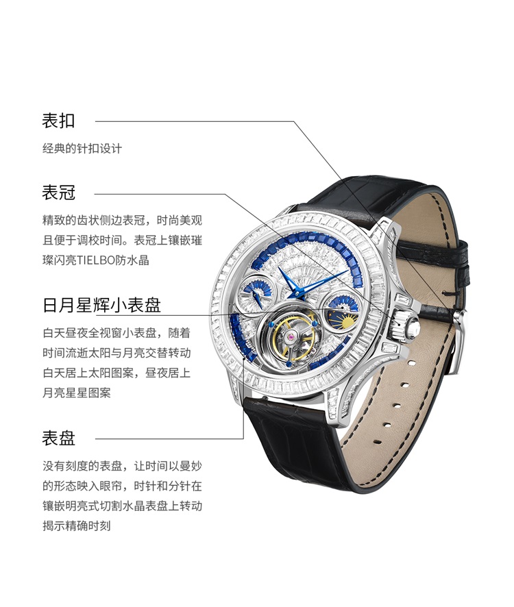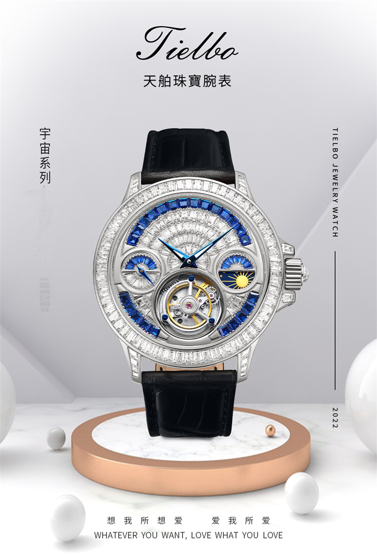轻奢腕表 J好评500+【天舶TIELBO】宇宙系列 全国包邮 男士手表全自动机械 陀飞轮名表高端大气轻奢时尚手表男真皮腕表白金/枚金T806