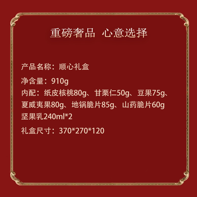三只松鼠 年货坚果礼盒 办公休闲零食大礼包 顺心礼910g 精美彩盒装