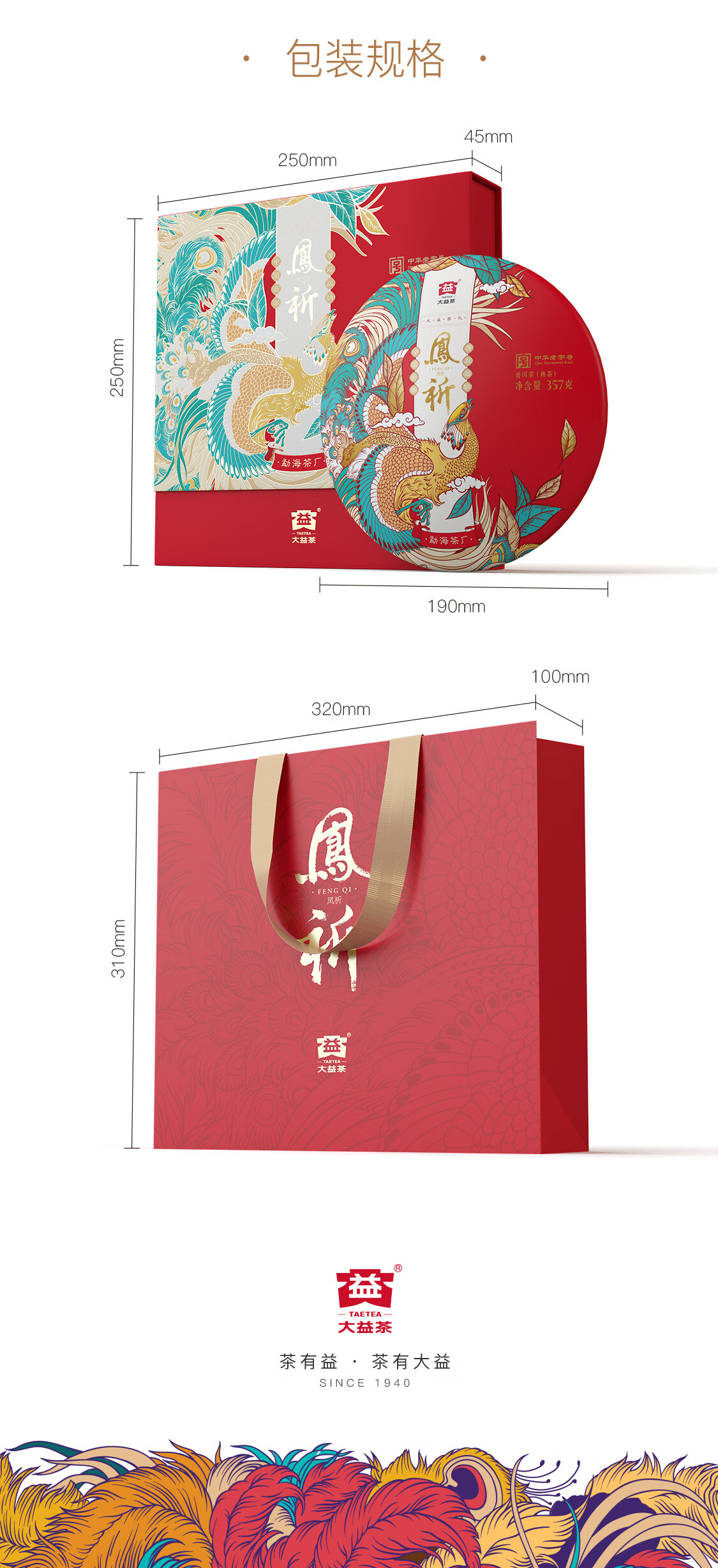 大益茶 TAETEA 茶叶普洱茶茶饼 凤祈普洱熟茶357g 茶叶年货礼盒 送礼 送长辈精美彩盒装