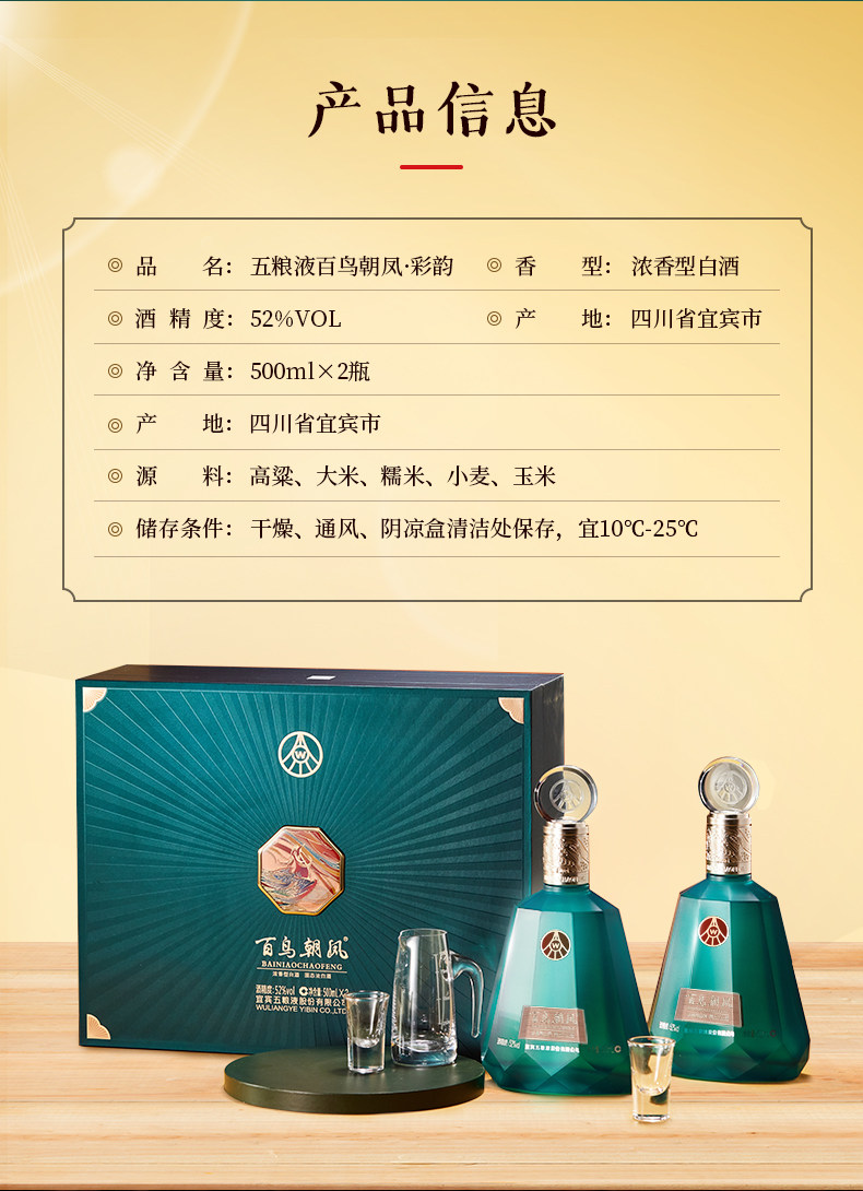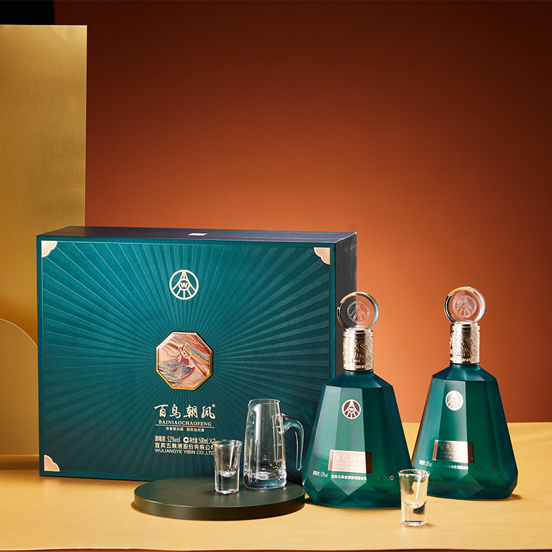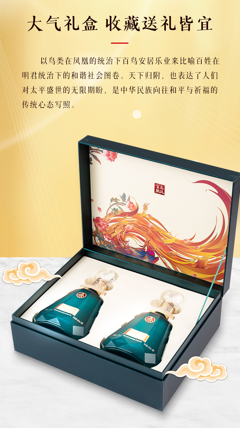 五粮液百鸟朝凤蓝钻浓香型白酒52度500ml*2瓶礼盒送礼节日纯粮酒水