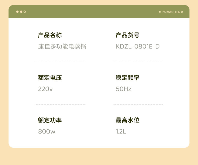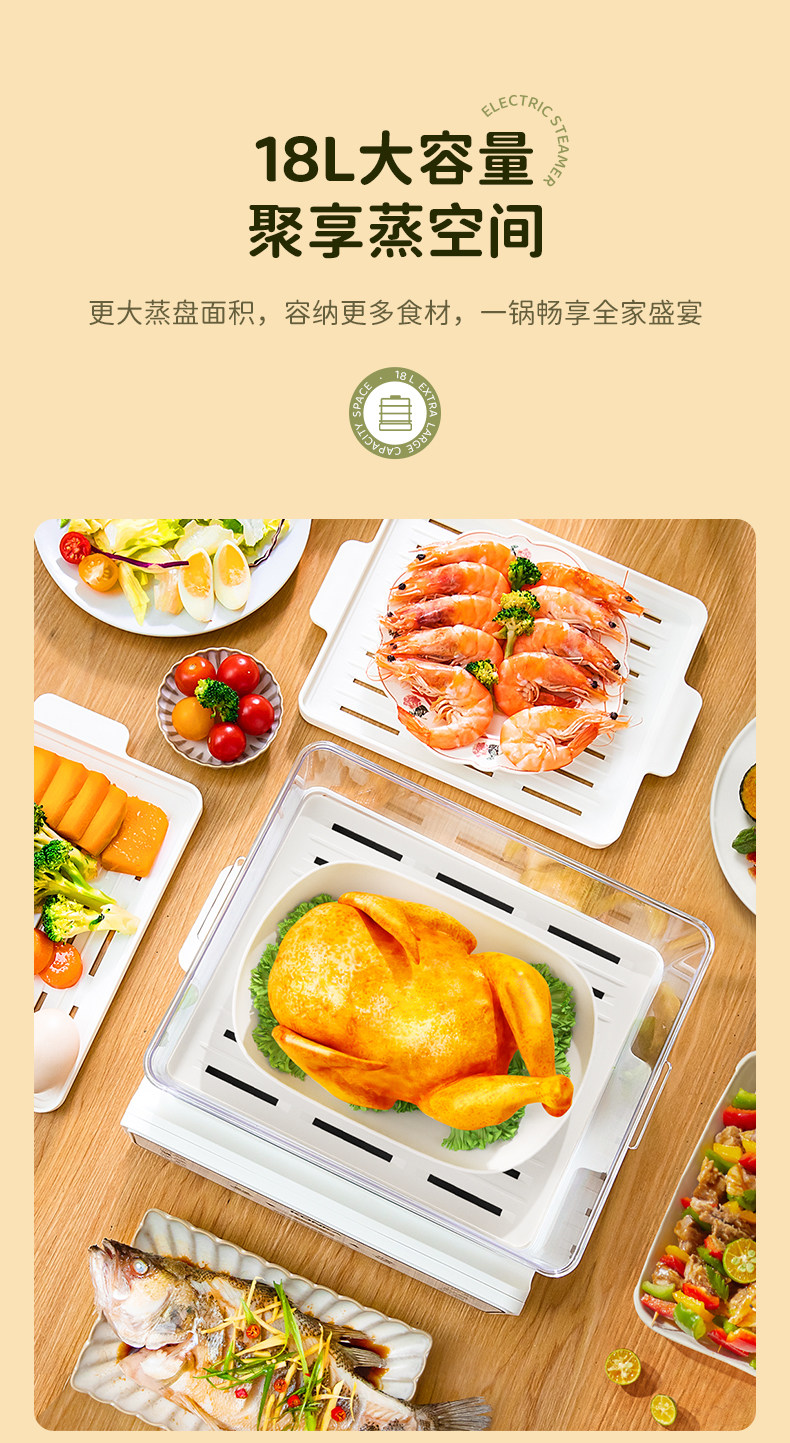 康佳 家用蒸锅蒸煮一体三层大容量电热锅多功能锅电蒸笼早餐机 KDZL-0801E-D