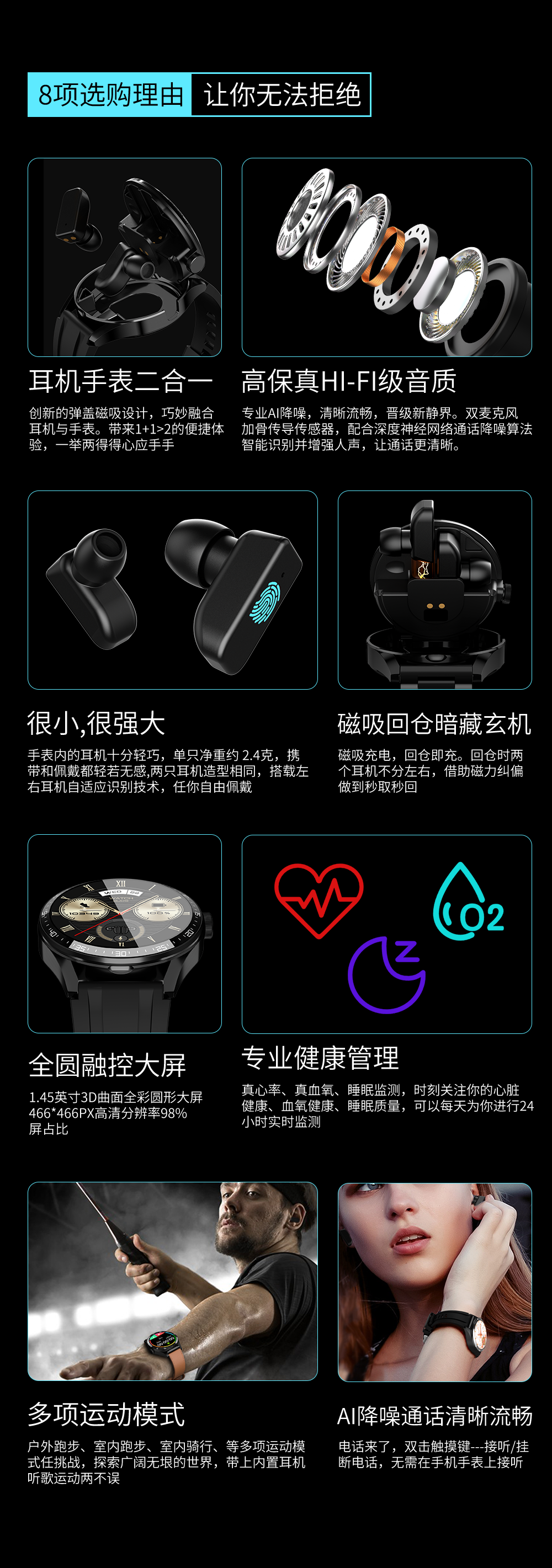 LEFIT勒菲特GT5 buds智能手表心率蓝牙通话音乐播放TWS耳机二合一计步运动手表