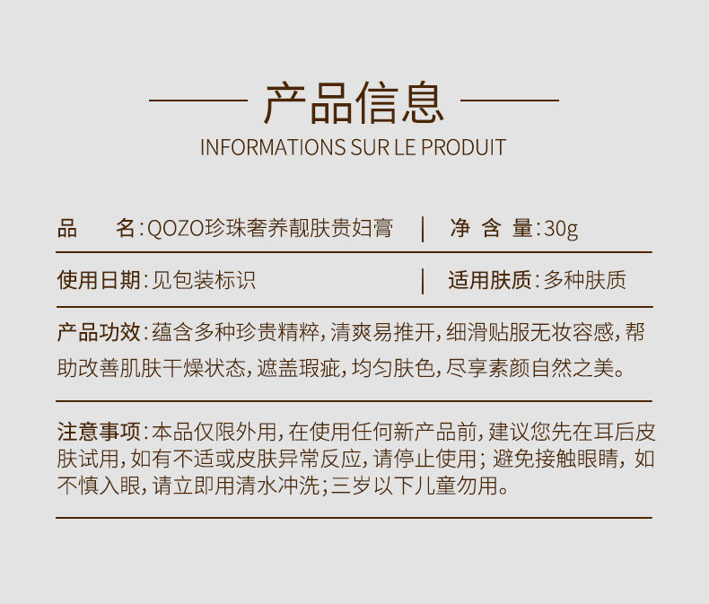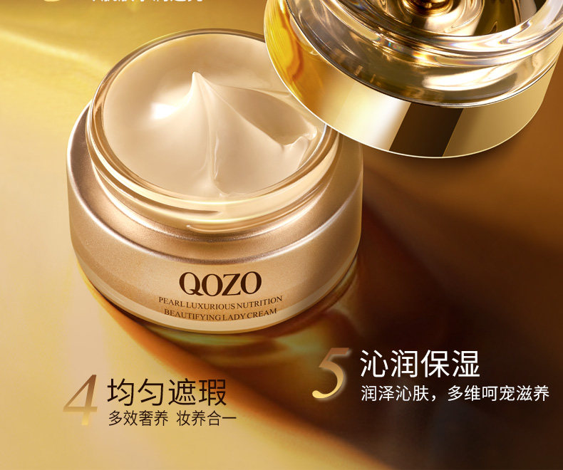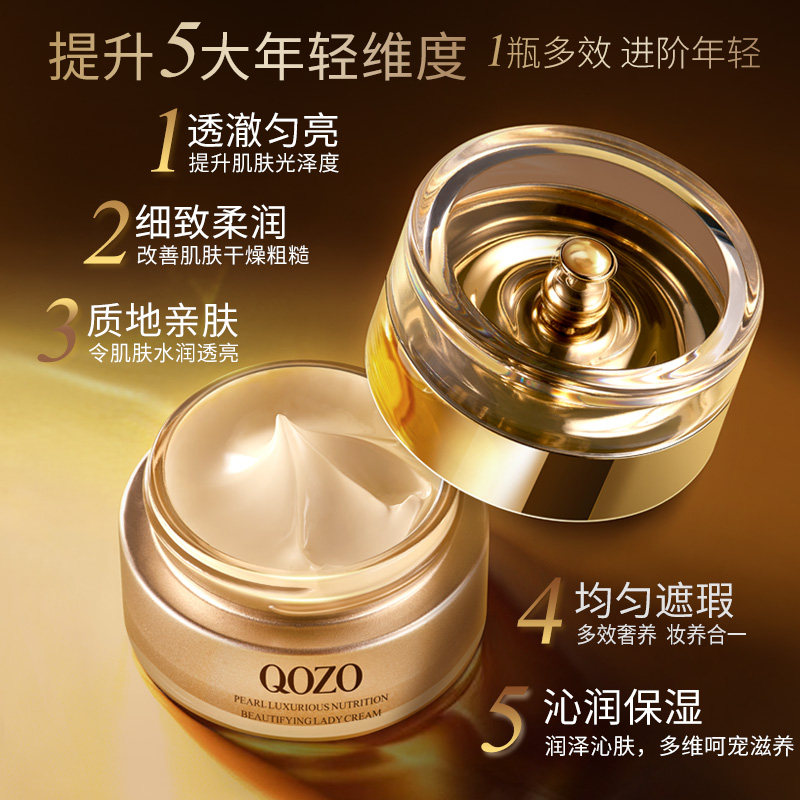 QOZO珍珠奢养靓肤贵妇膏遮瑕提靓清透水润补水素颜霜龙血膏正品