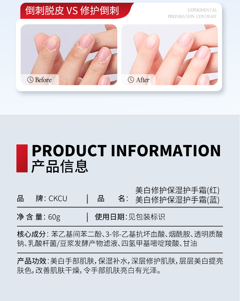 CKCU美白修护保湿护手霜(红蓝组合)60g+60g