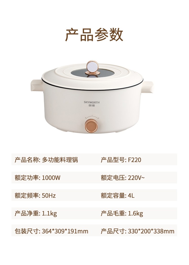 创维电火锅 电煮锅火锅专用锅 4L多功能锅家用F220