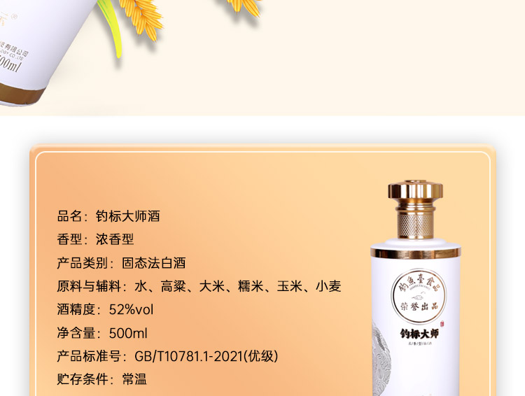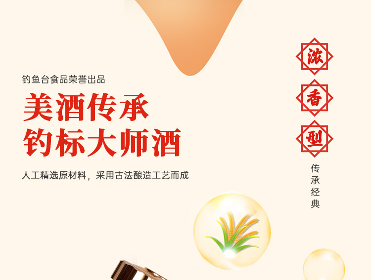 钓标 钓鱼台食品荣誉出品 钓标大师酒 52度浓香型白酒 纯粮酿造 500ml/瓶 单瓶礼盒装 两瓶附赠手提袋