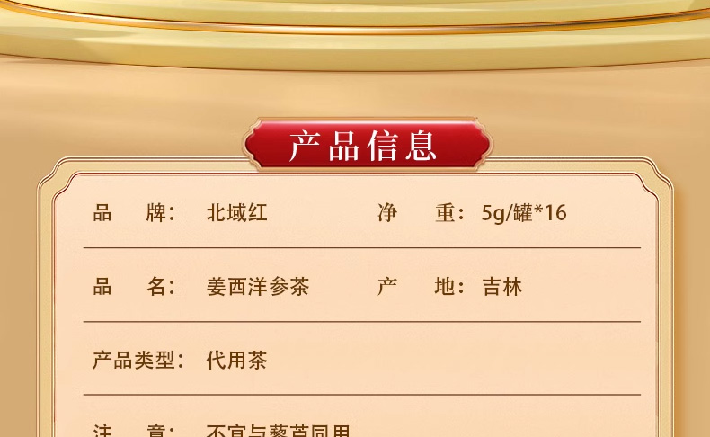 北域红长白山姜西洋参茶北域红姜西洋参北域首礼代泡茶礼盒西洋参泡水荧光色5g/罐*16罐/盒