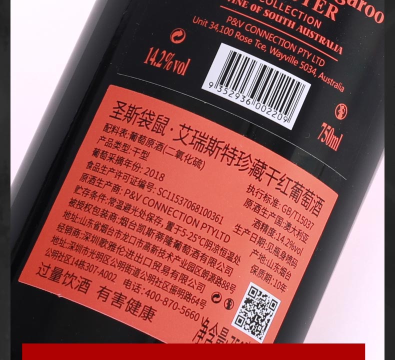 【整箱6瓶】圣斯袋鼠 艾瑞斯特珍藏干红葡萄酒 14.2%vol干红葡萄酒 红酒 750ml * 6瓶 澳洲原酒进口