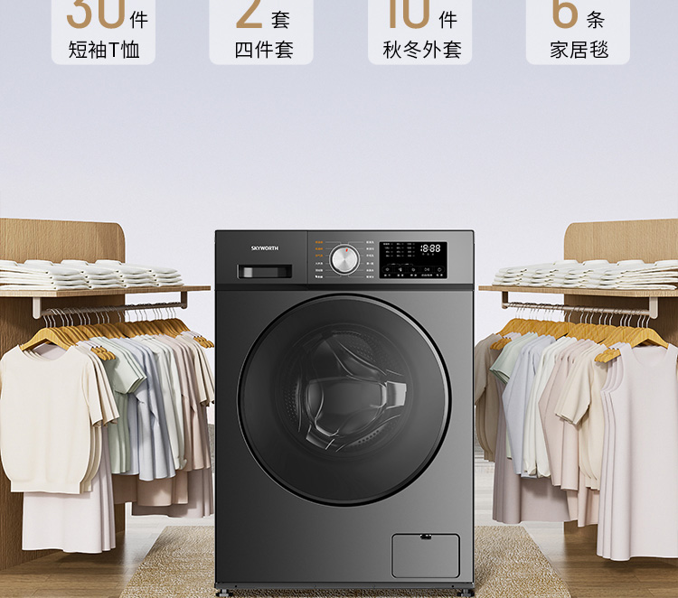 创维洗烘一体滚筒洗衣机除菌除螨高颜值全自动节能洗脱一级能效变频滚筒洗衣机 10kg滚筒洗衣机GF100KHC3_钛金灰