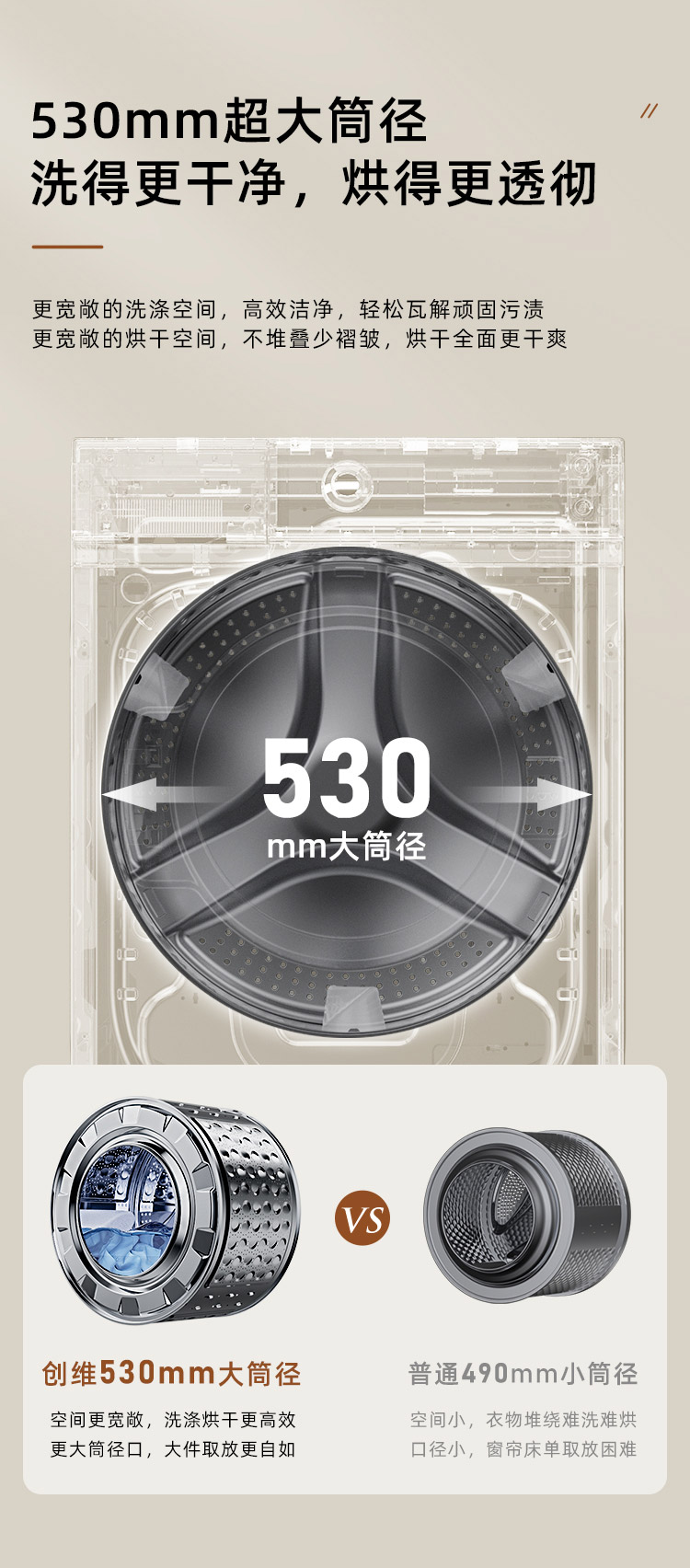 顺丰京东发货 创维洗烘一体变频滚筒洗衣机10kg带烘干洗烘一体洗衣机全自动超薄大容量直驱变频除菌洗衣机 WD100-PDGW 新月白