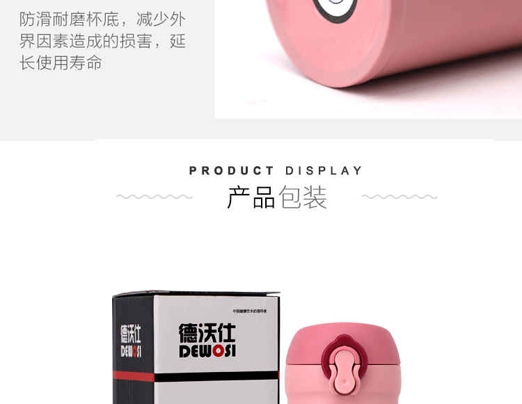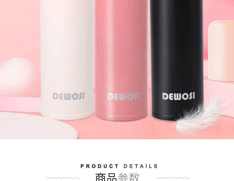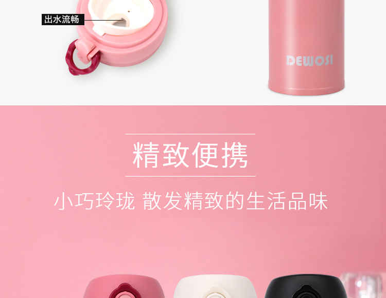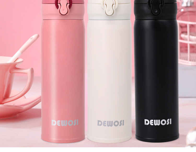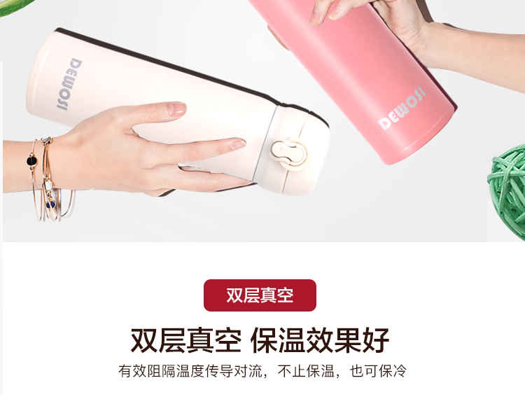 德沃仕真空弹跳杯 WL-D005 保温杯 304不锈钢水杯 杯子 500ML (黑色/白色/粉色)颜色款式下单请备注