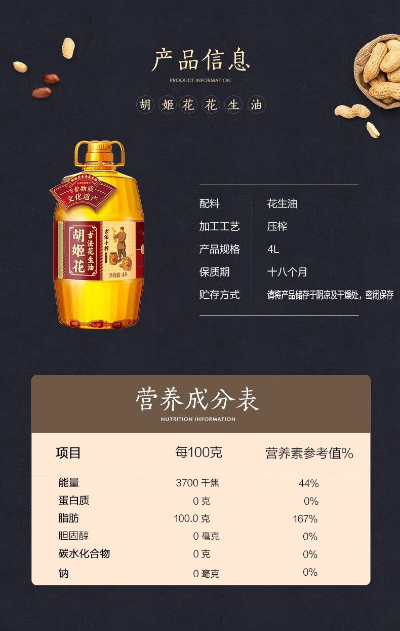 胡姬花花生油4L