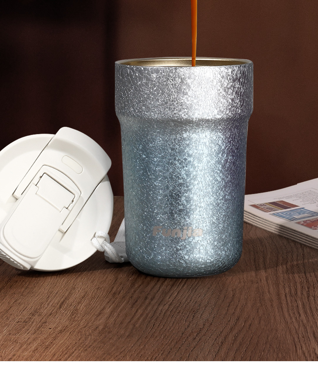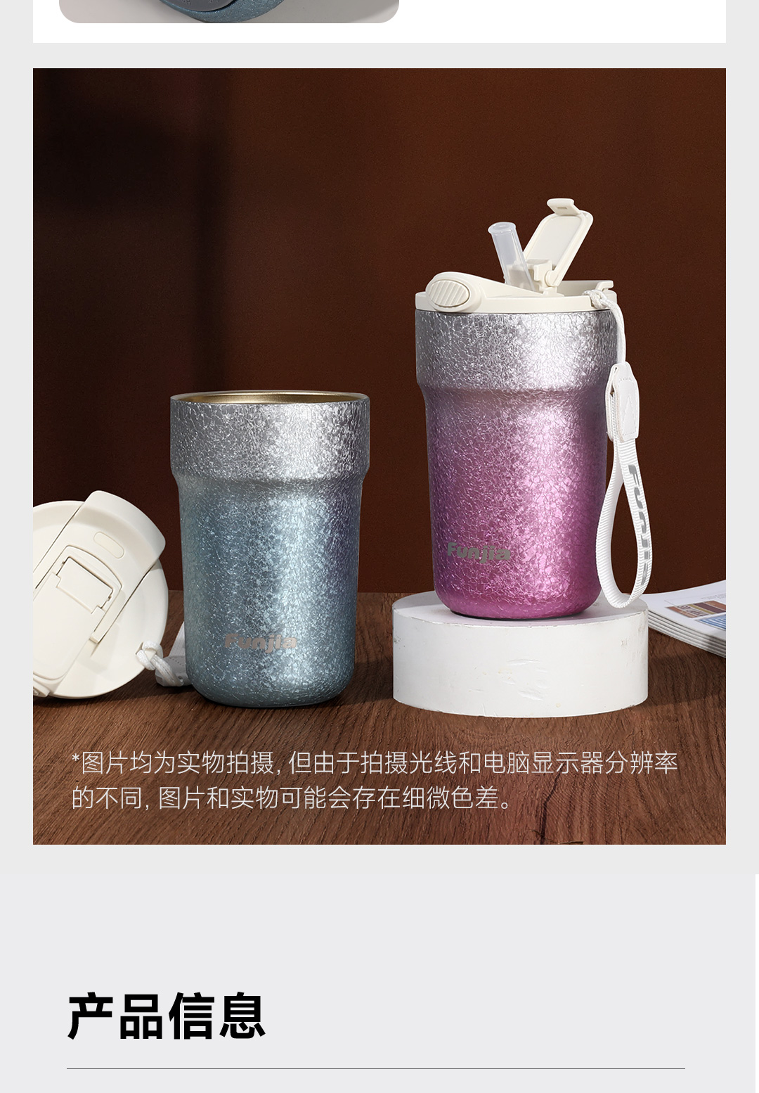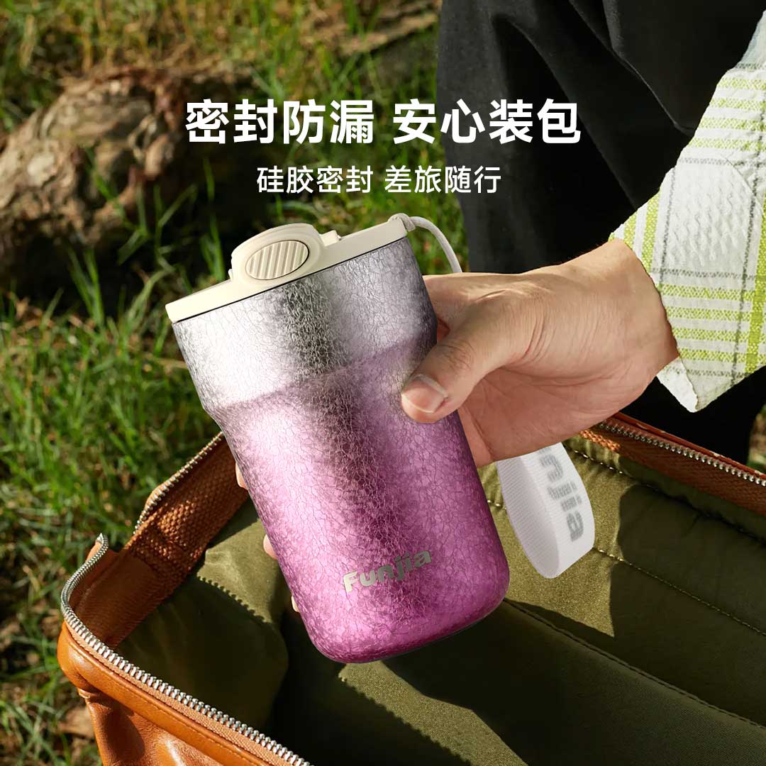 Funjia趣家覆钛保温杯双层咖啡杯钛杯男女高颜值水杯便携双饮情侣保温杯 渐变蓝色 420ml FJ-TA036