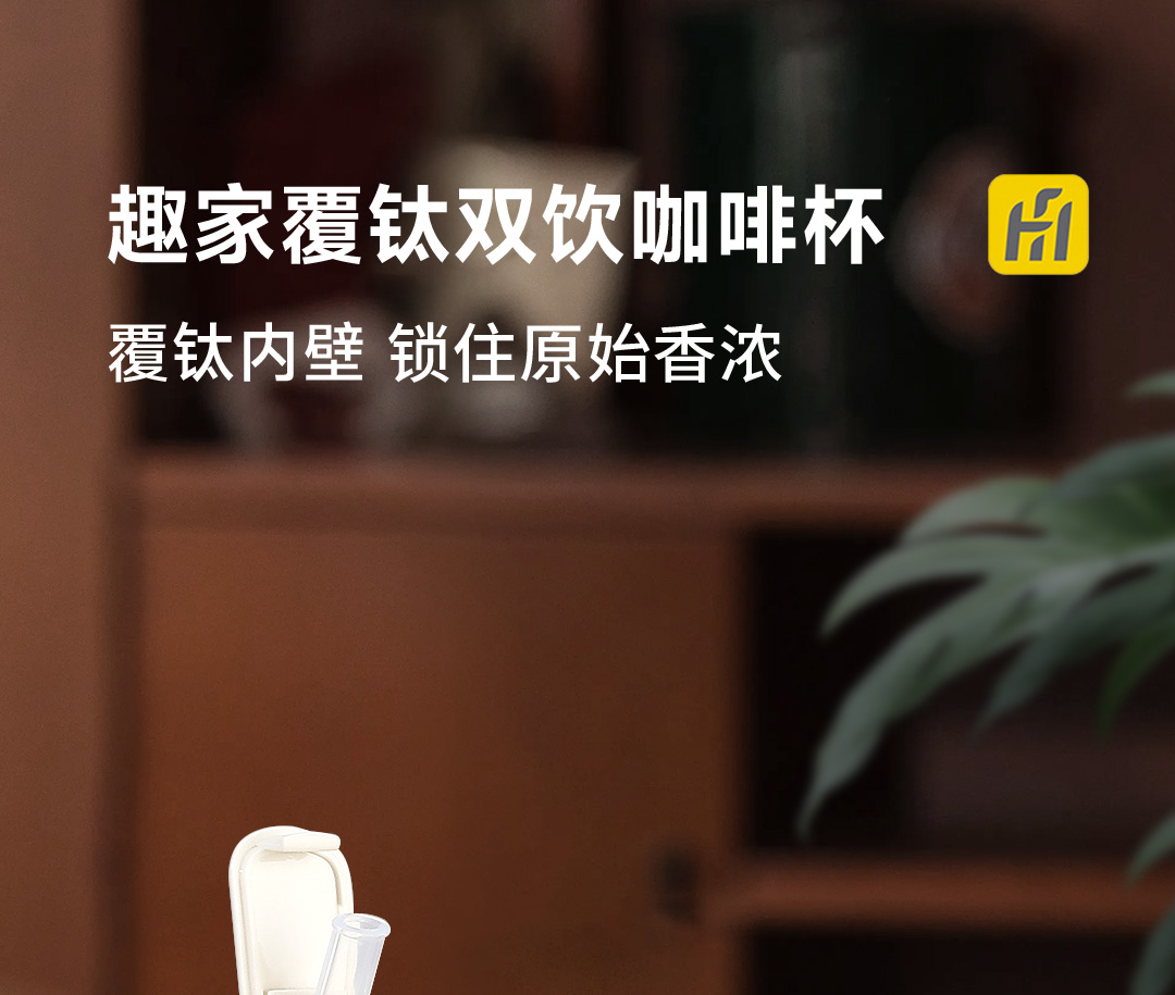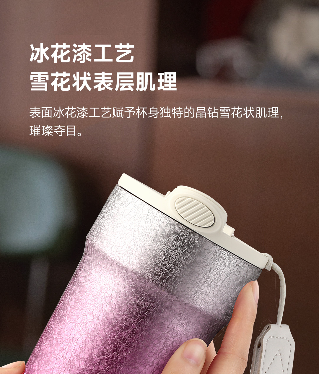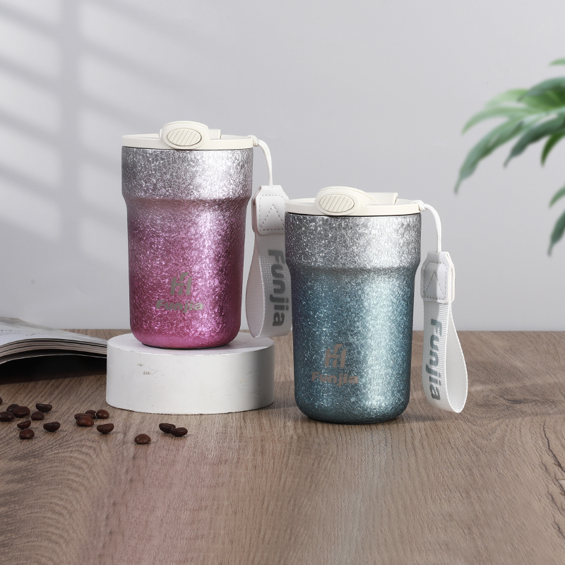 Funjia趣家覆钛保温杯双层咖啡杯钛杯男女高颜值水杯便携双饮情侣保温杯 渐变蓝色 420ml FJ-TA036
