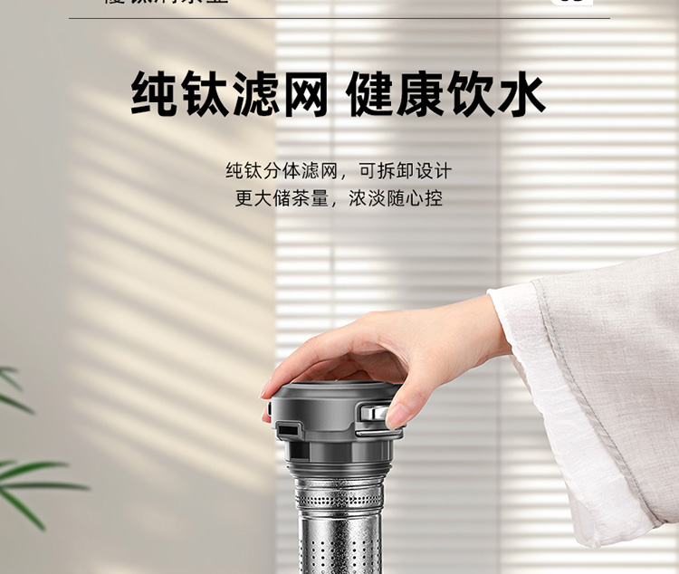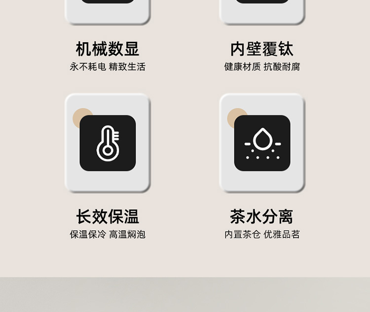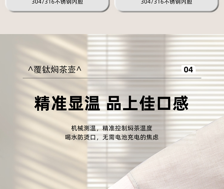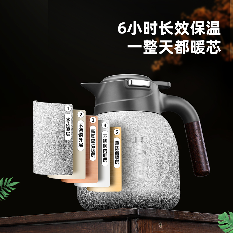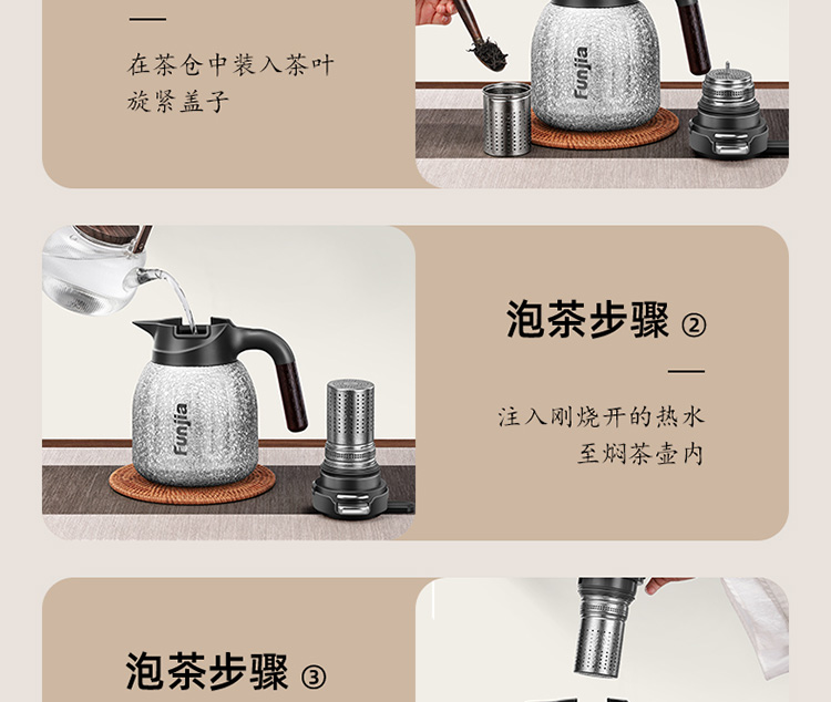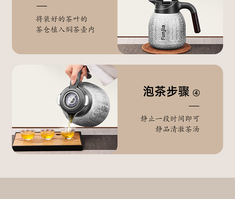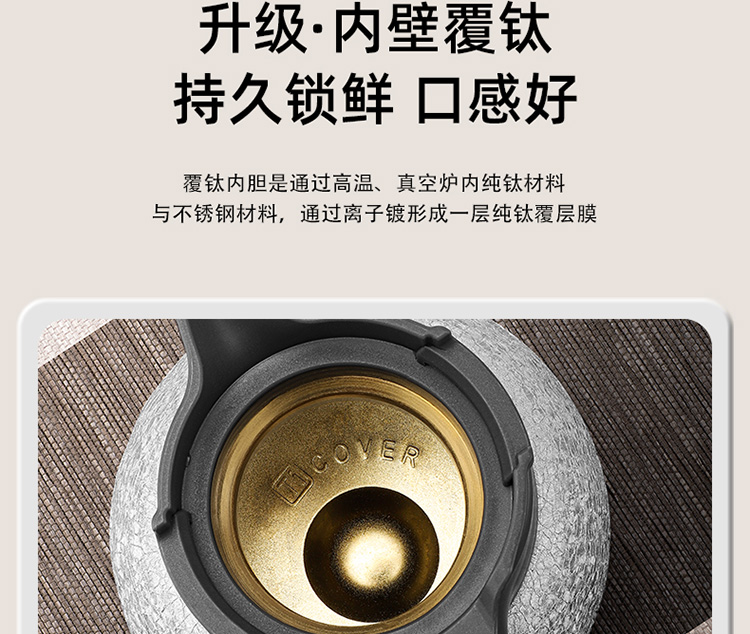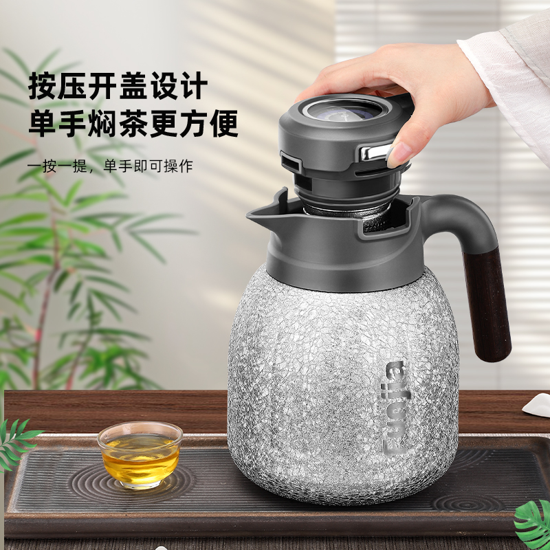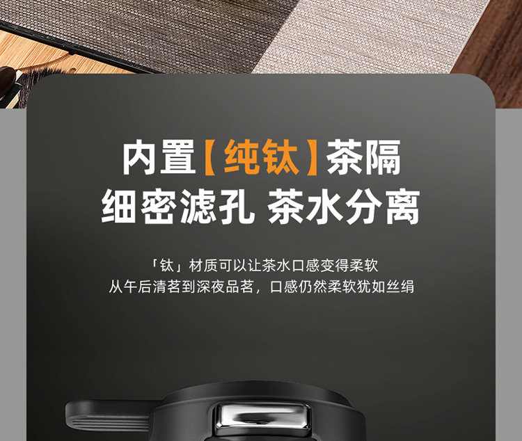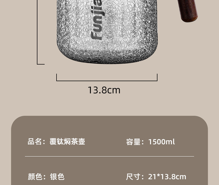 Funjia趣家内壁纯钛高端茶壶机械温显泡茶保温水壶闷茶壶钛壶 1500ml FJ-TH002