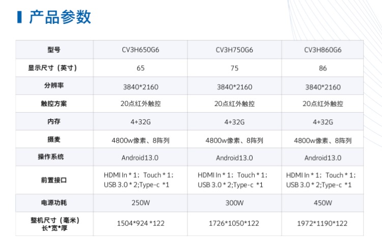 创维(Skyworth)会议平板 CV3H860G6智能触摸一体机电子白板无线传屏视频会议商用显示 65英寸 带摄像头