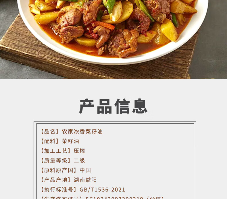【陈克明】农家浓香菜籽油5L 非转基因 物理压榨食用油 家用烘焙炒菜粮油 企业团购送礼