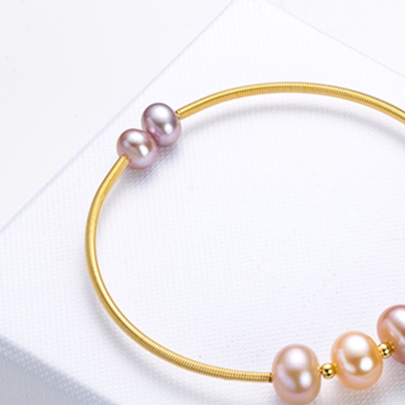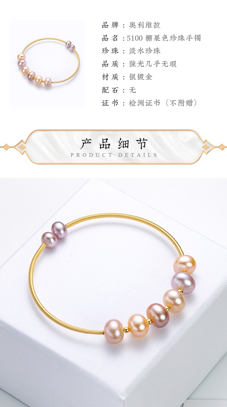 法国奥利维拉珠宝糖果色天然珍珠手镯淡水真珍珠活口镀金手镯C15-5100 带礼袋