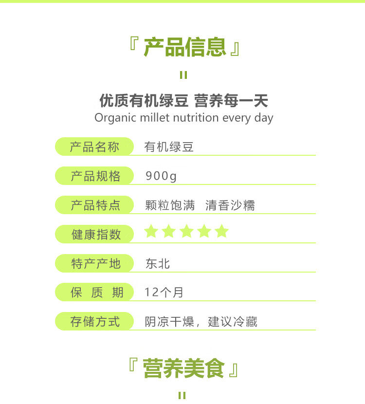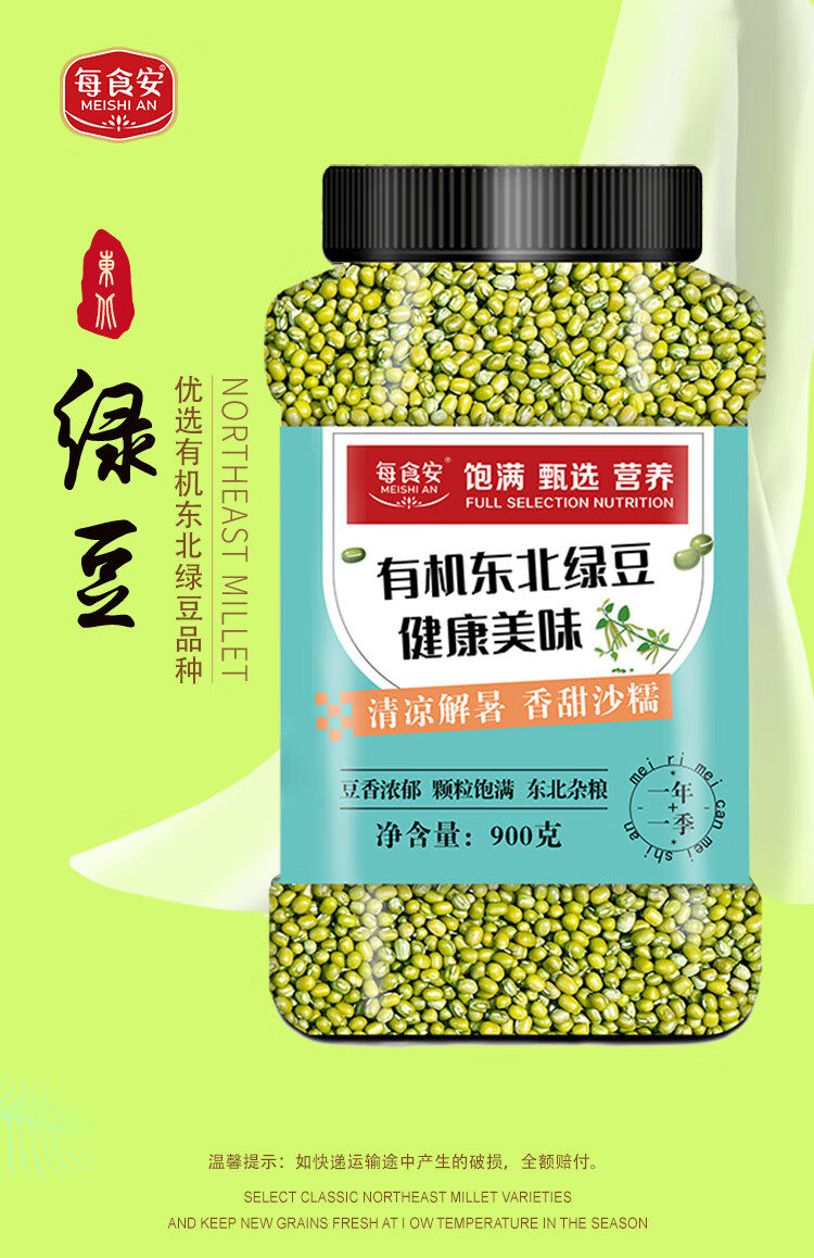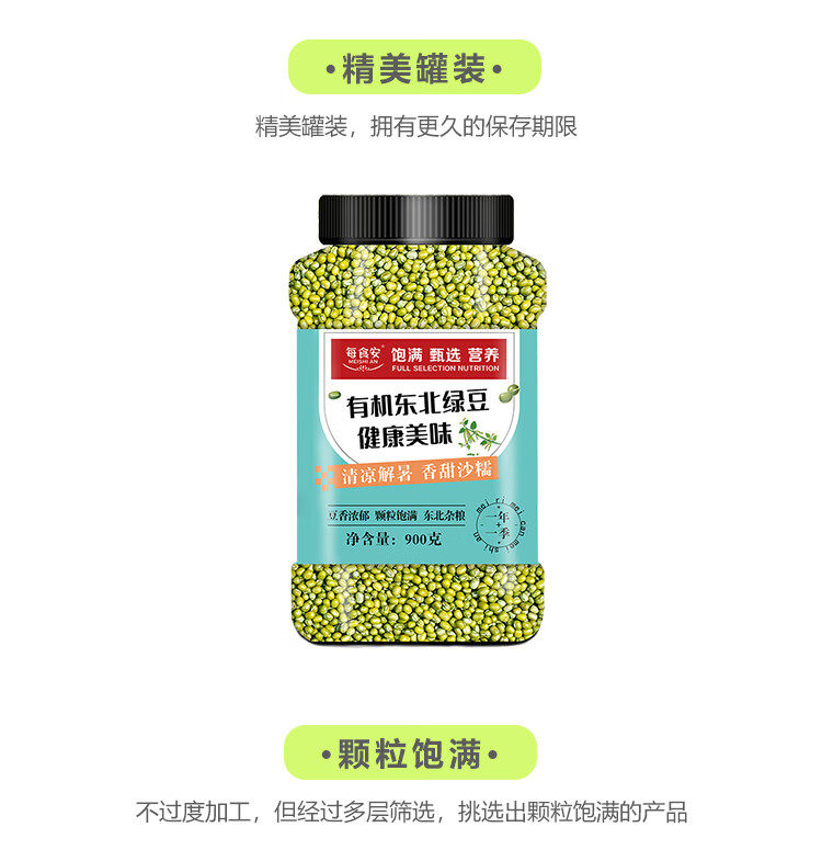 每食安有机绿豆900g罐装(五谷杂粮东北粗粮发豆芽打豆浆大米粥米伴侣)