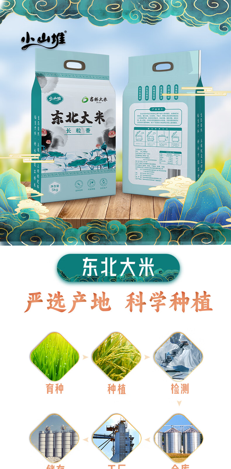 小山堆东北大米长粒香大米5kg 优质产地现代工艺新鲜大米5kg真空包装