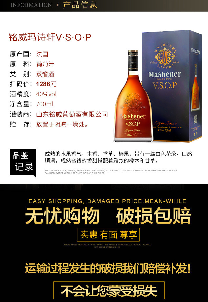 玛诗轩名仕VSOP 700ml*1瓶 2支配送礼盒袋