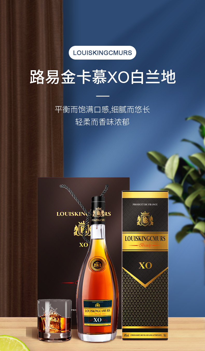 路易金卡慕.XO白兰地700ml*1瓶 2支配送礼盒袋