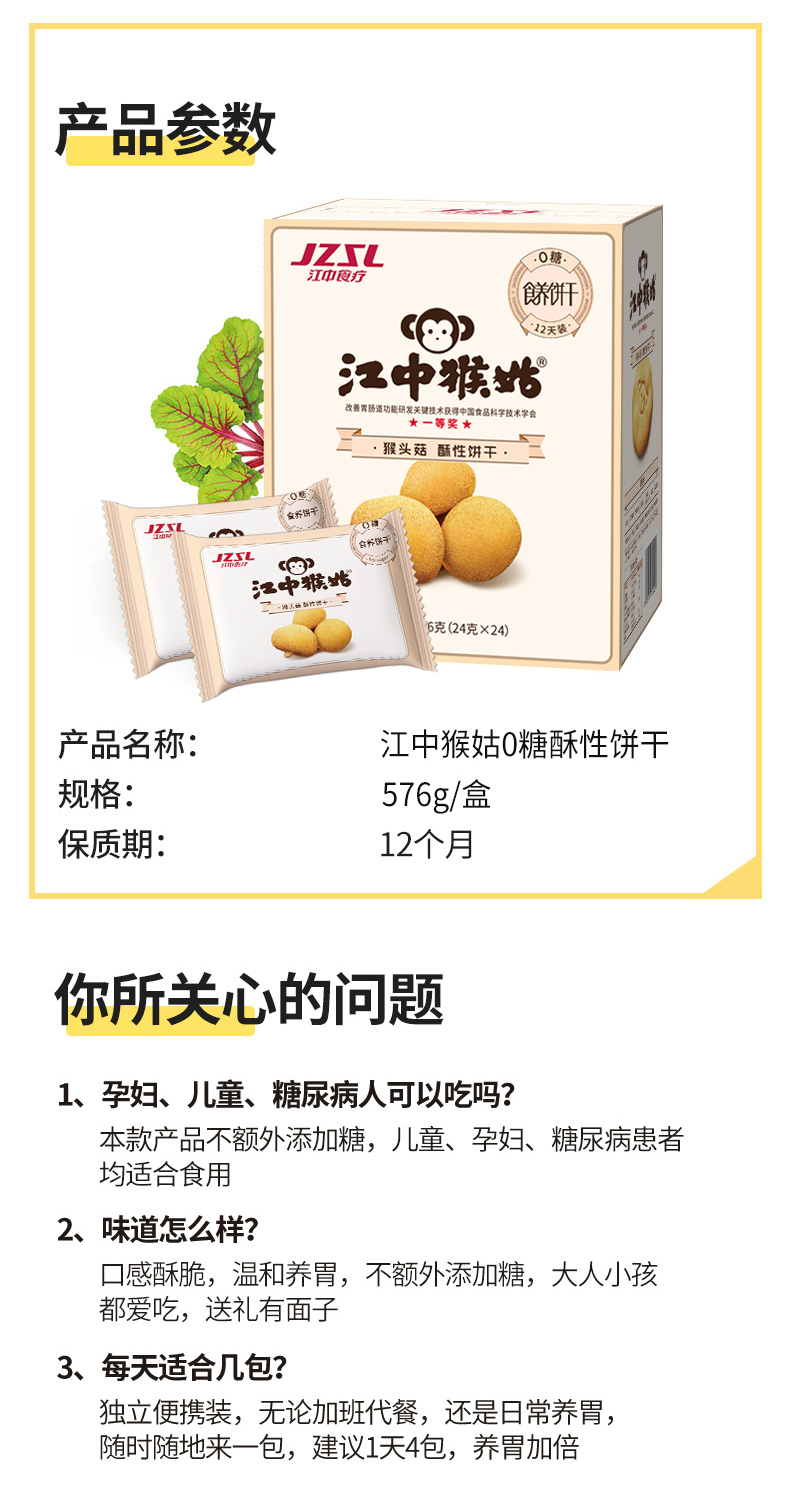 江中猴姑0糖酥性饼干12天装576g【24克*24包】