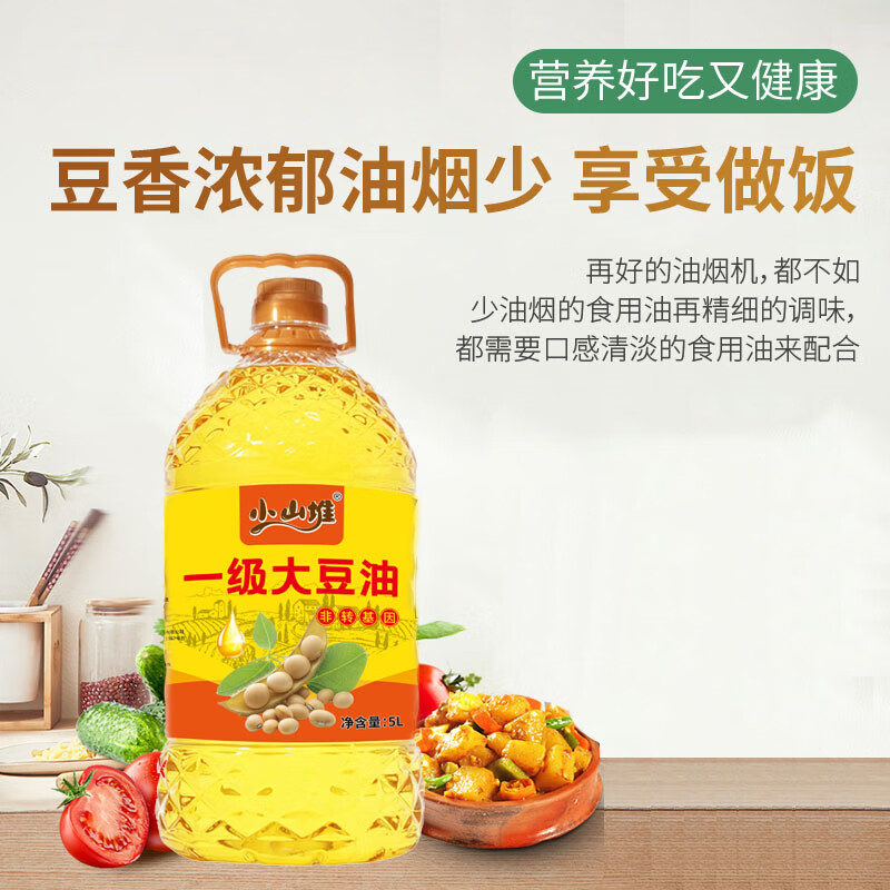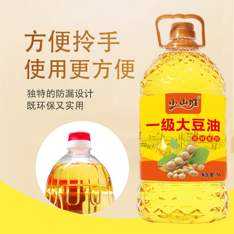 小山堆压榨一级非转基因一级大豆油5L/桶 非转基因物理压榨精选原料丰富营养一级大豆油食用油5L/桶