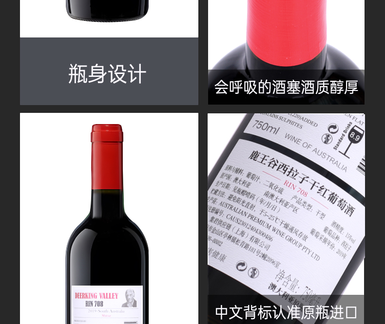 鹿王谷 RIN708 西拉子干红葡萄酒 澳大利亚原瓶原装进口 15度干红葡萄酒 红酒 750ml/瓶 单瓶装