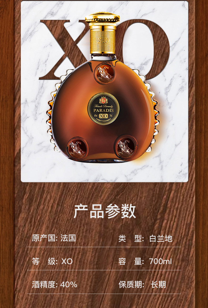伯爵大卫 法国原瓶进口洋酒 珍藏级伯爵大卫XO白兰地700ml 橡木桶储藏6年加20年老干邑 单瓶礼盒装